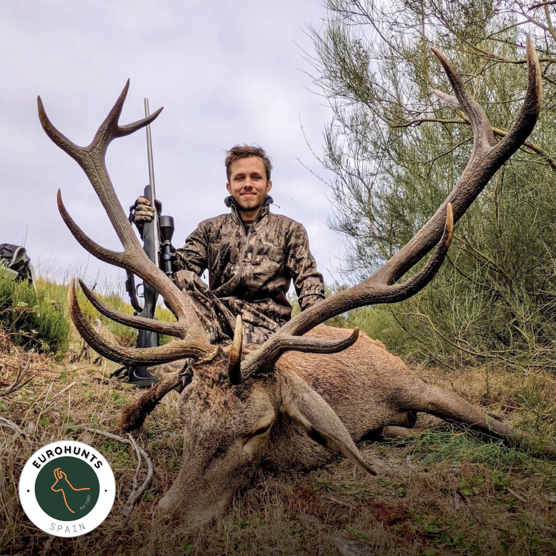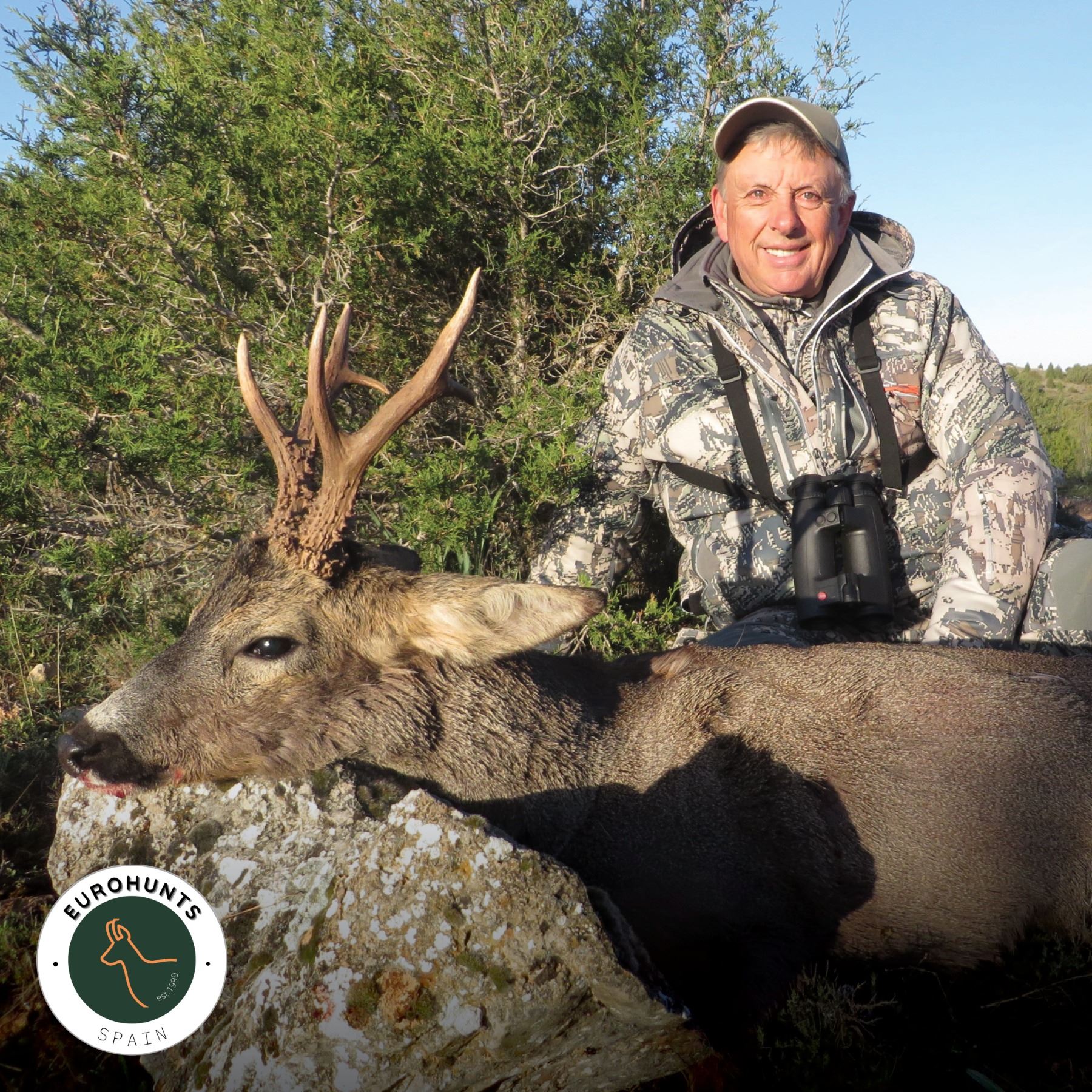 Iberian red or roe deer trophy fees one per hunter up to SCI bronze class, trophy field preparation, meat processing, taxidermy delivery and official form score.