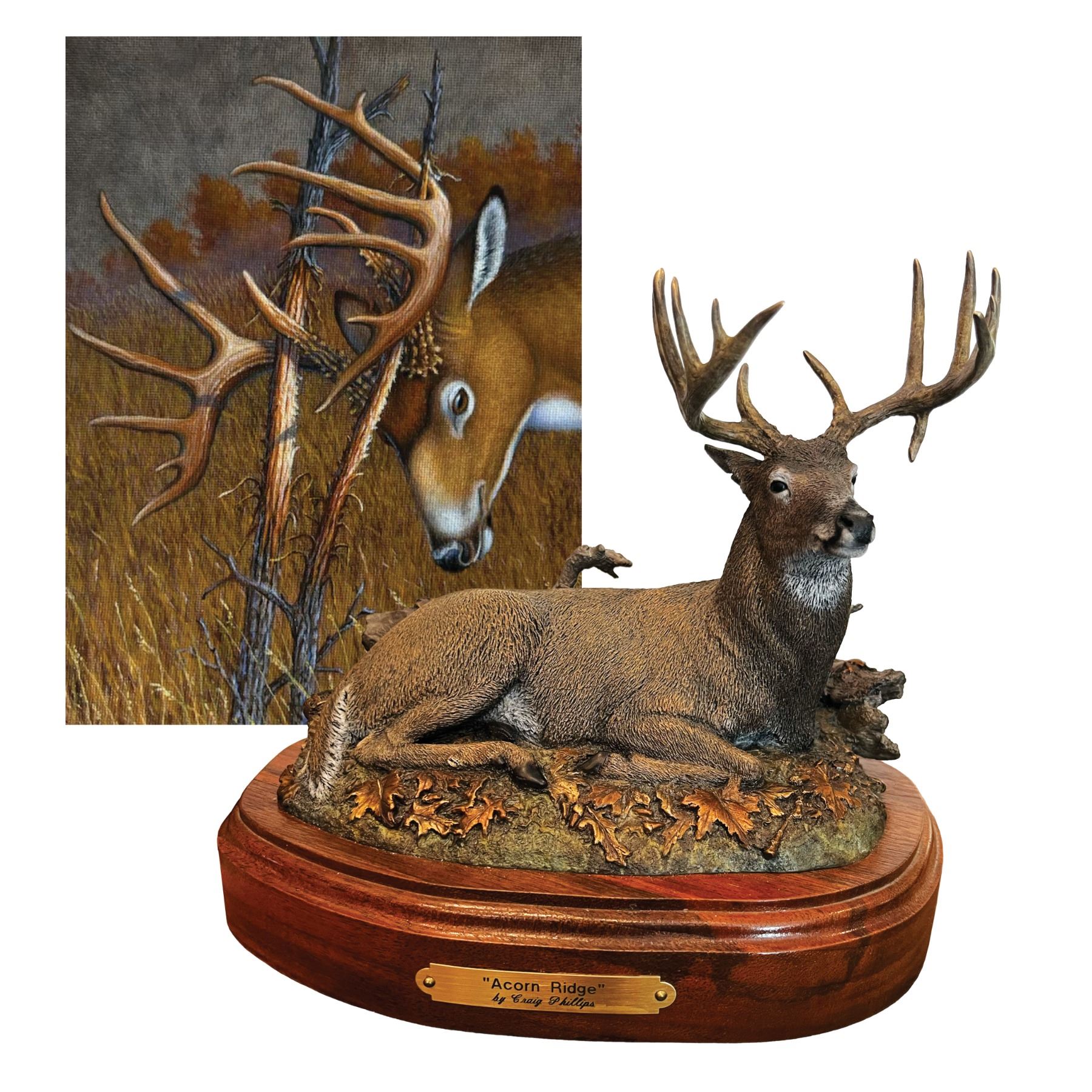 ORIGINAL WILDLIFE ART BRONZE & PAINTING COMBO “WHITETAIL DEER”
