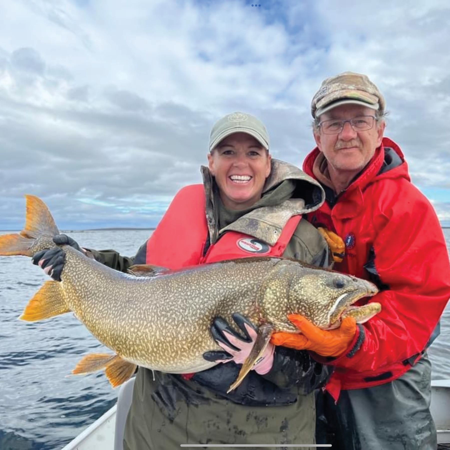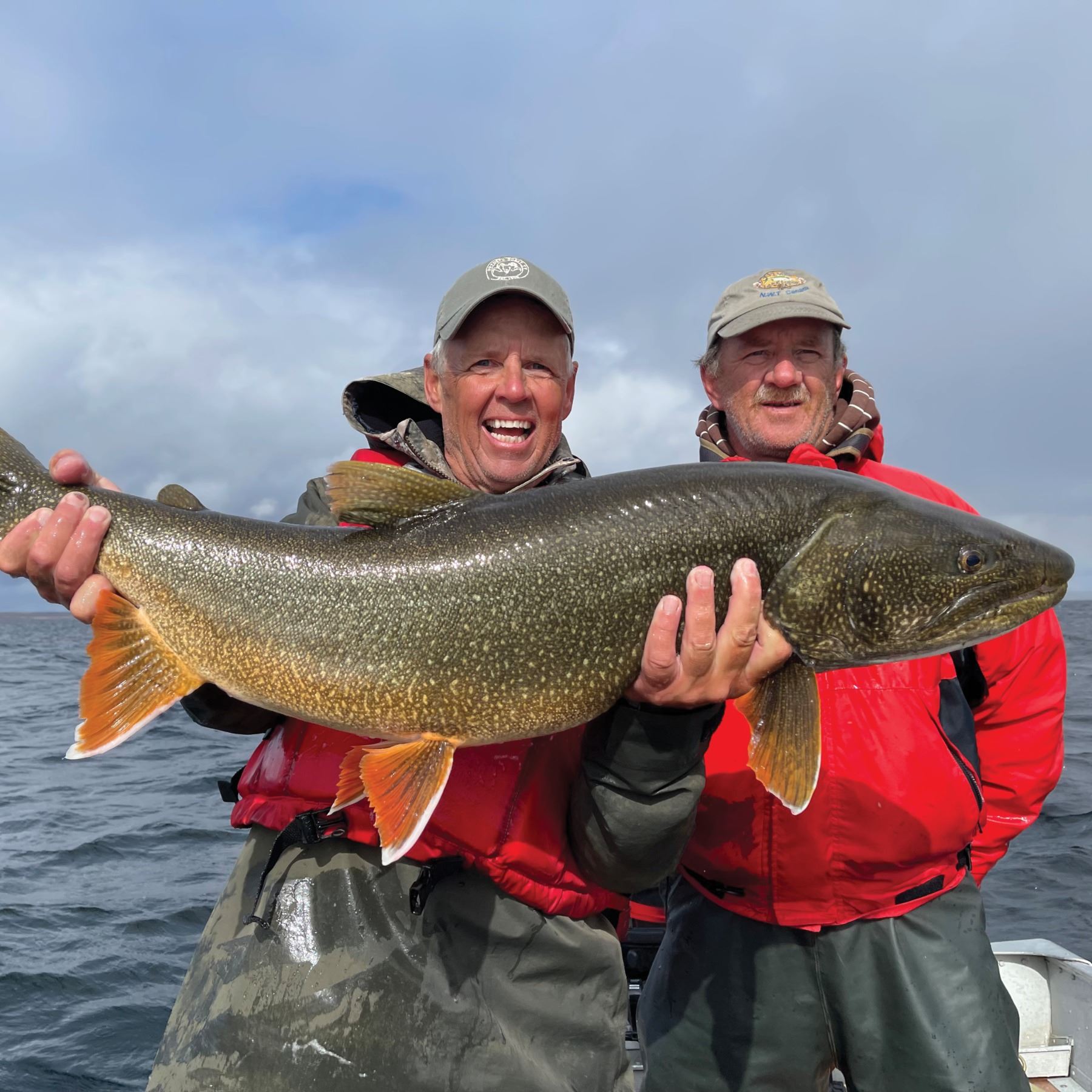 Lodge record is a 67 lb. lake trout on spin reel, a 53 lb. lake trout on fly rod, 6.1 lb.