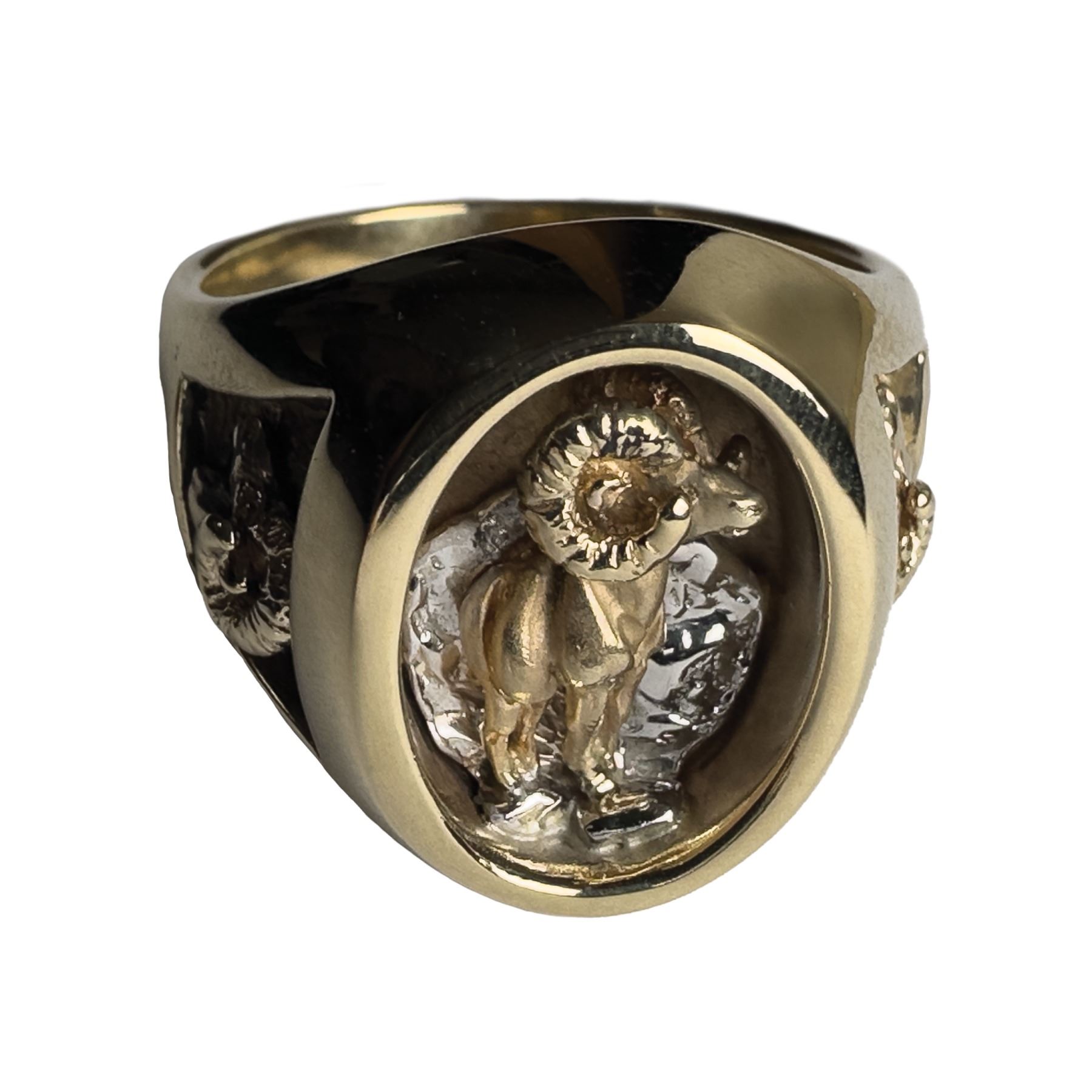 ONE-OF-A-KIND 14K GOLD MEN’S BIGHORN SHEEP RING - SIZE 11 1/2