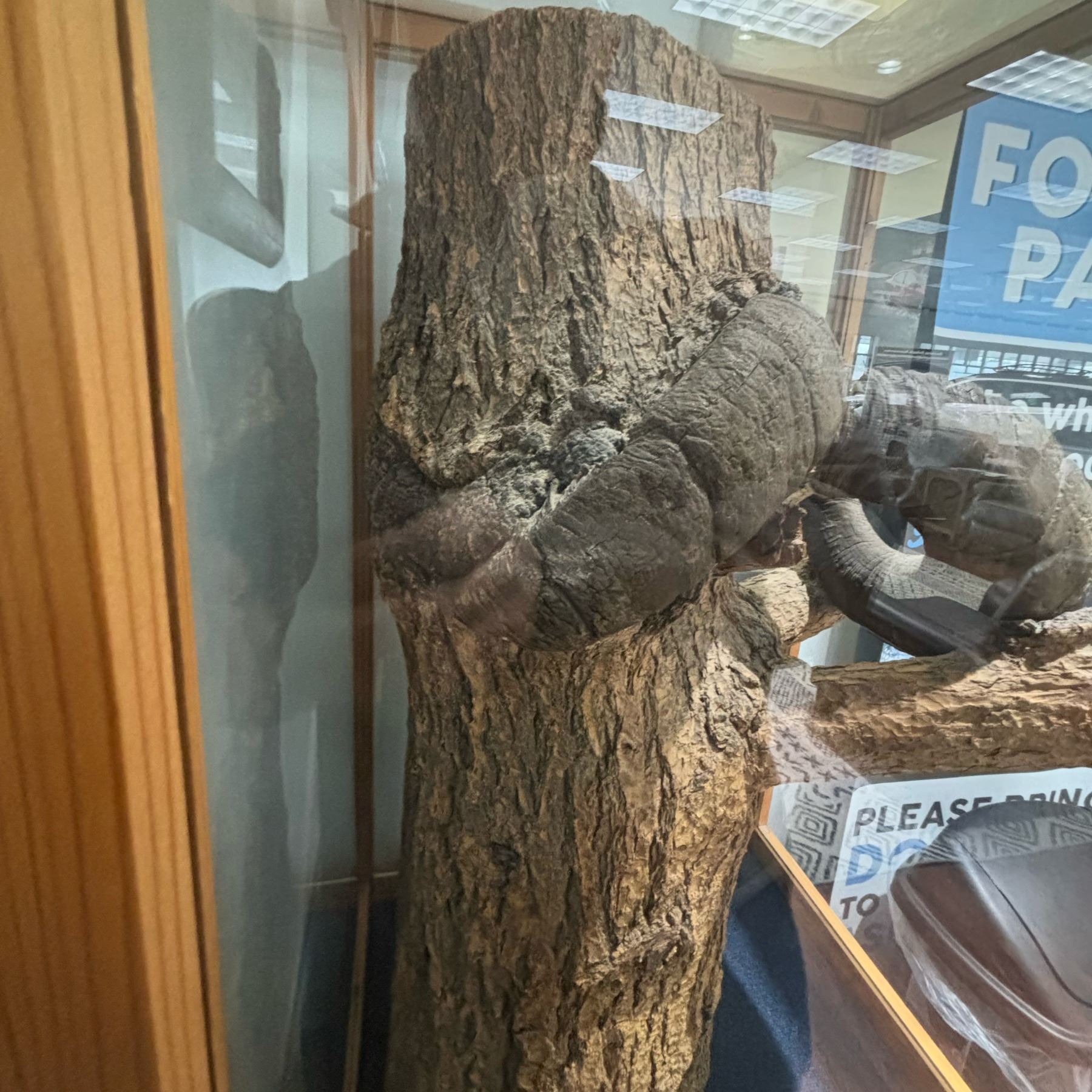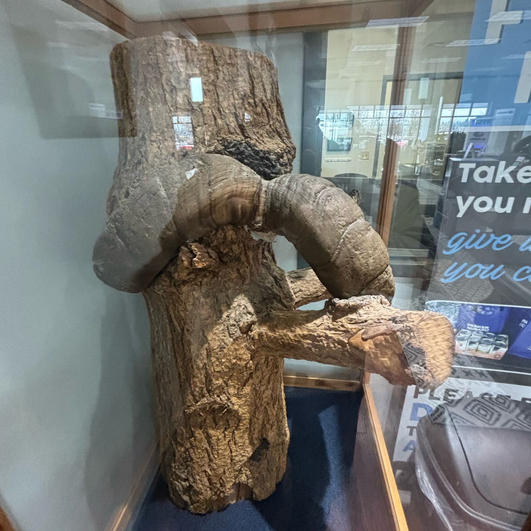 The stump collected dust in Stoddard’s shed until 1983 when his niece put It on display in her restaurant.