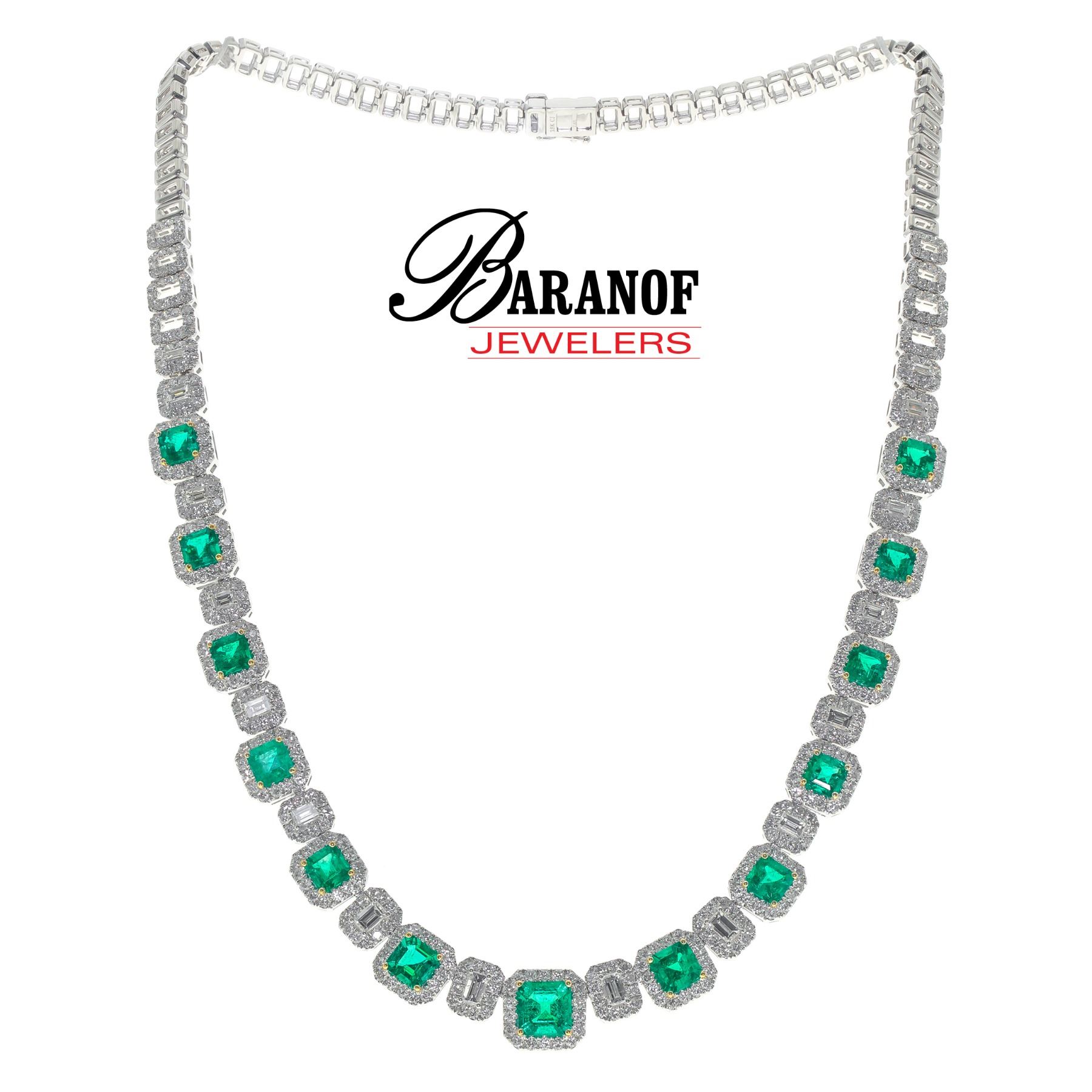NATURAL COLOMBIAN EMERALD AND DIAMOND NECKLACE SET IN 18 KARAT WHITE GOLD