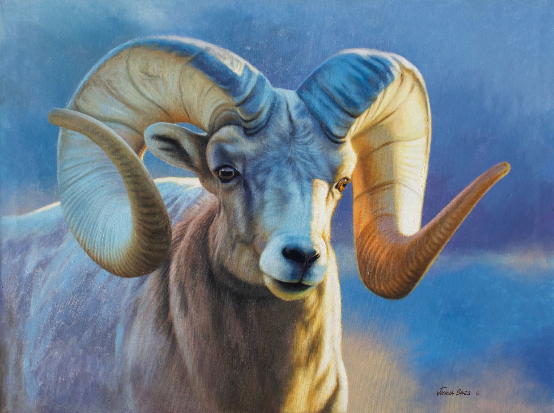 This beautiful 36x48 original oil painting of a bighorn sheep portrait is donated by long-time supporter Joshua Spies.