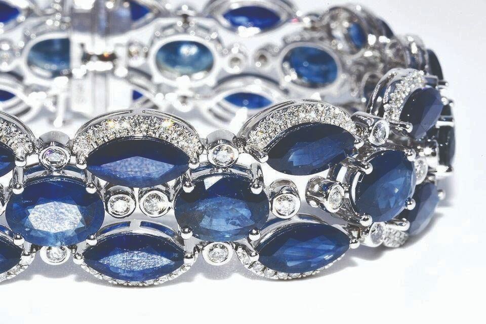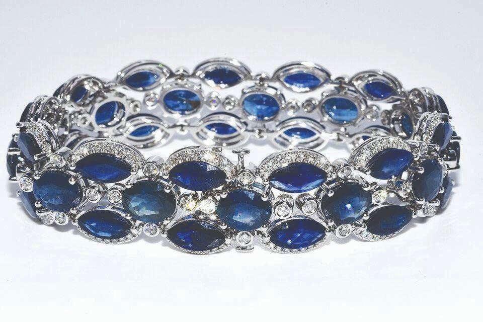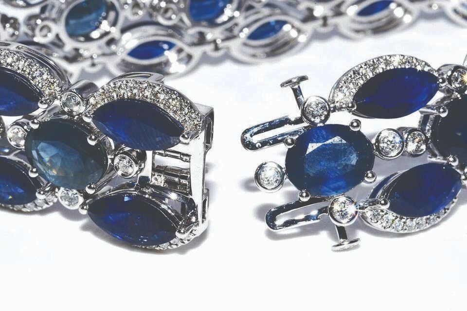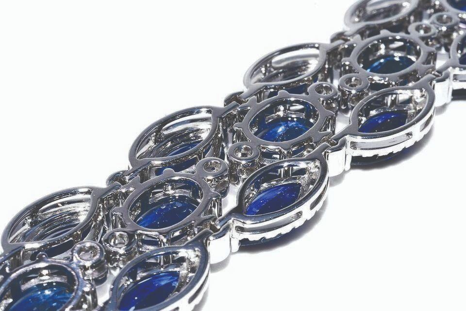 sapphires, three rows wide, with a total weight of 65.10 carats.