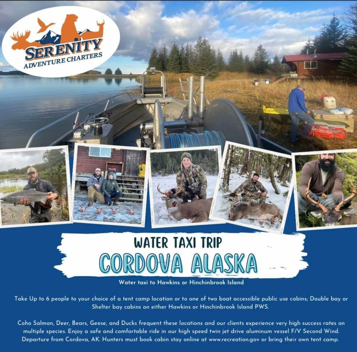 For more information, contact Ken Jones at (907) 360-3456 or serenityadventuresak@gmail.com. Visit Serenity’s Adventures on the web at: https://www.alaskadeerhunt.com/