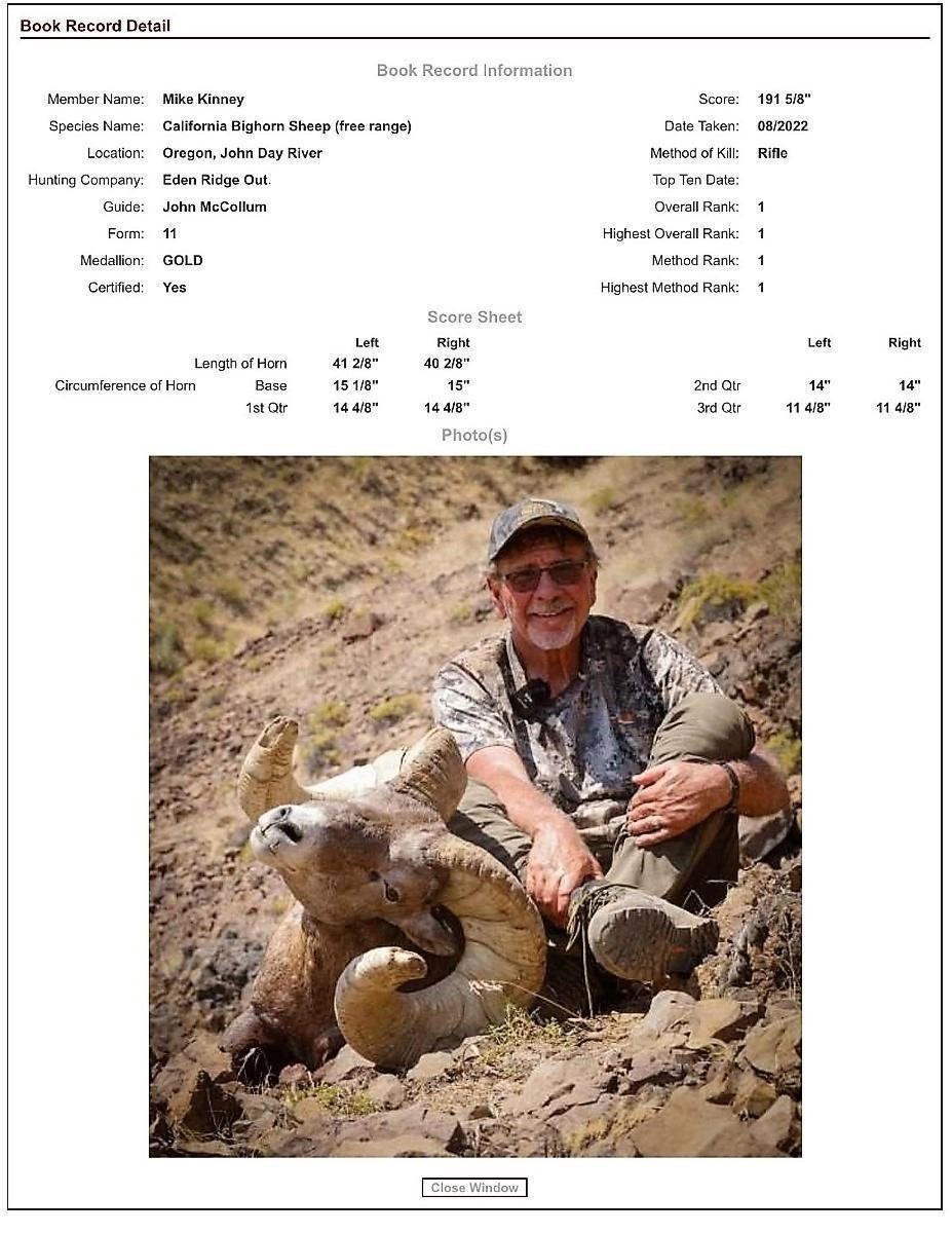 For more information, contact John McCollum at: 541-290-2671 or by email: edenridgehunts@gmail.com Company website: http://www.edenridgeoutfitters.com We thank them for their donation.