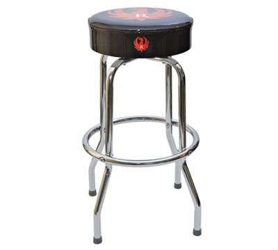 These black Ruger branded barstool feature a chrome plated heavy gage tubular steel frame and stands approximately 30" tall with a full swivel seat.
