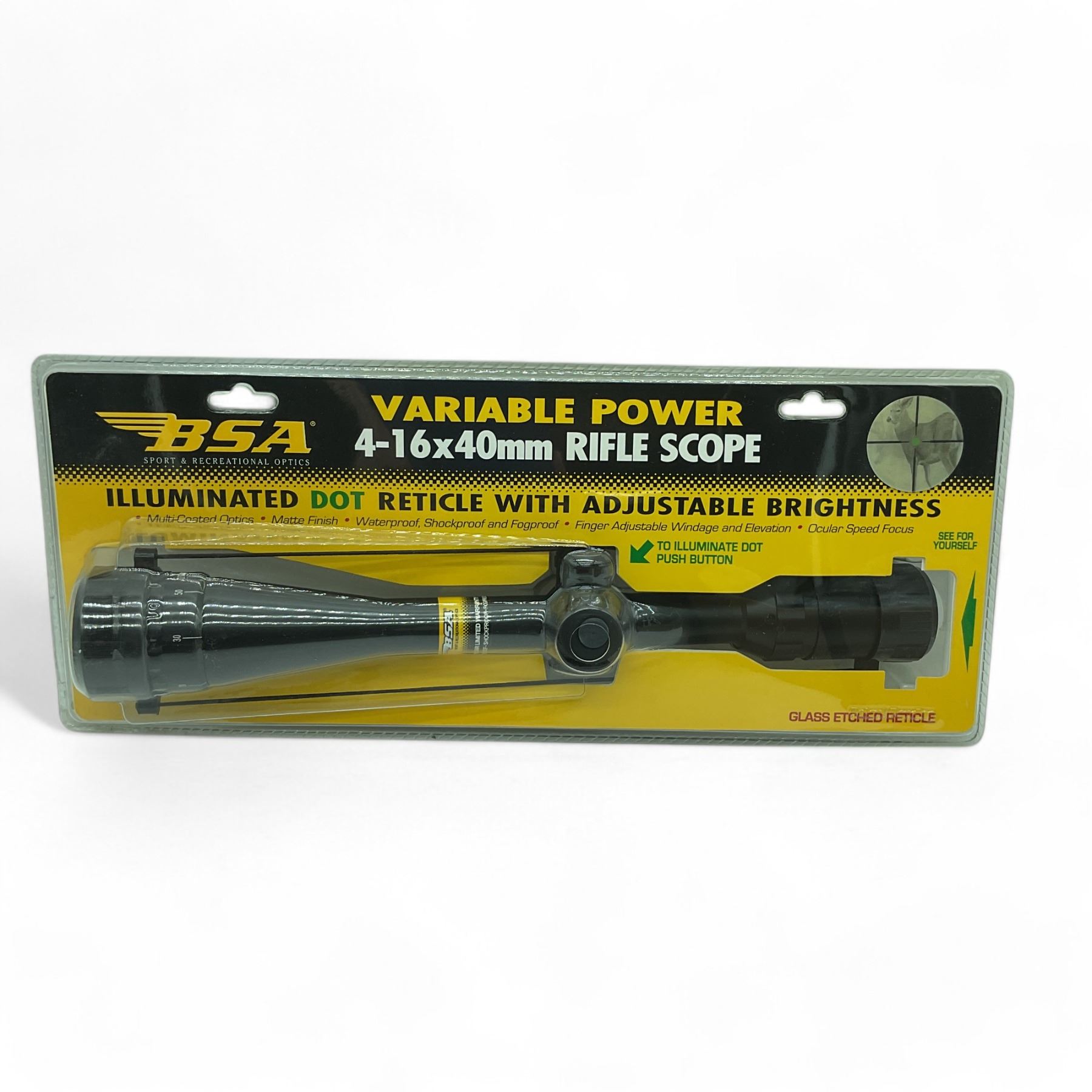 Lot 6032 BSA Variable Power 4-16x40mm Riflescope, Illuminated Dot Reticle with Adjustable Brightness