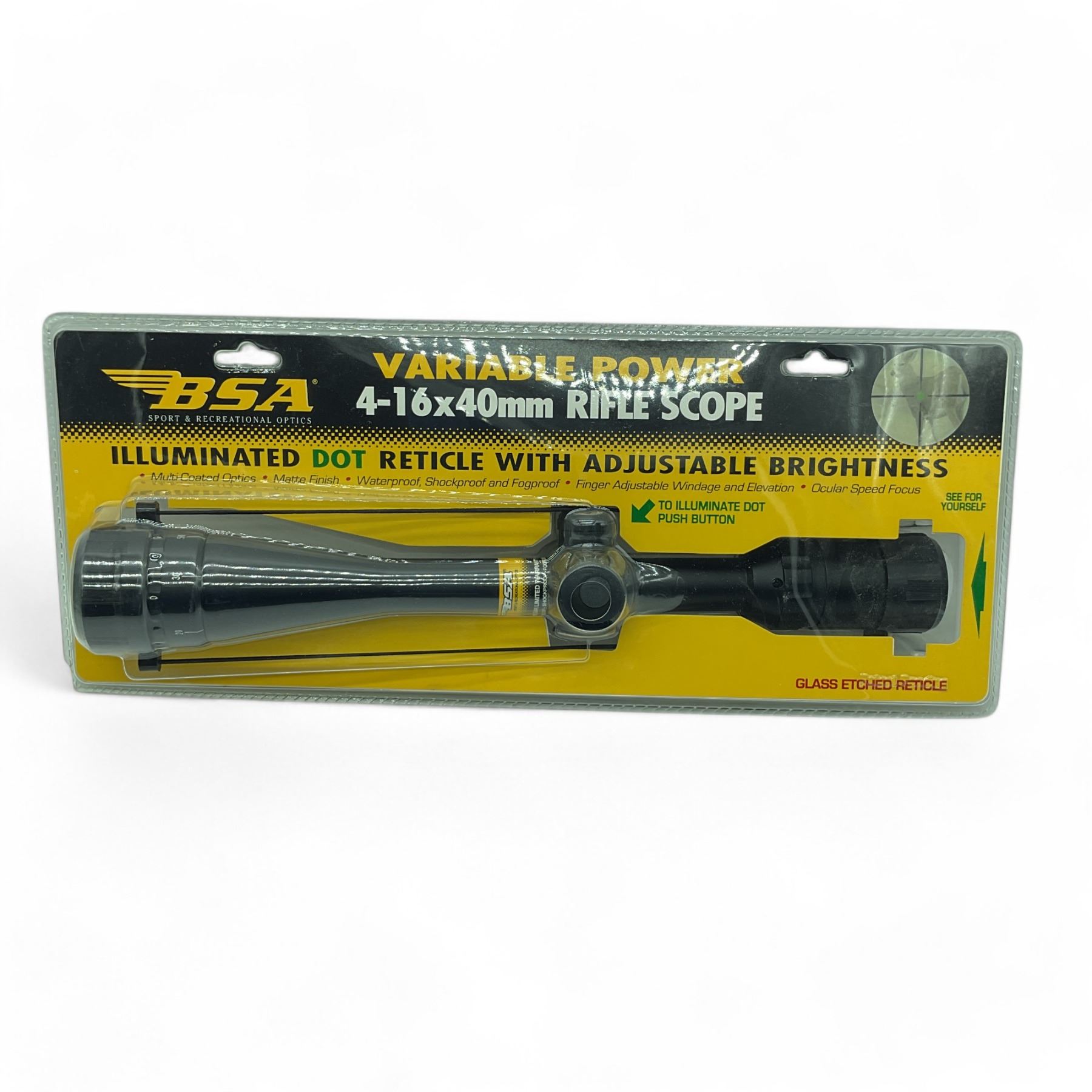 Lot 6065 BSA Variable Power 4-16x40mm Riflescope, Illuminated Dot Reticle with Adjustable Brightness