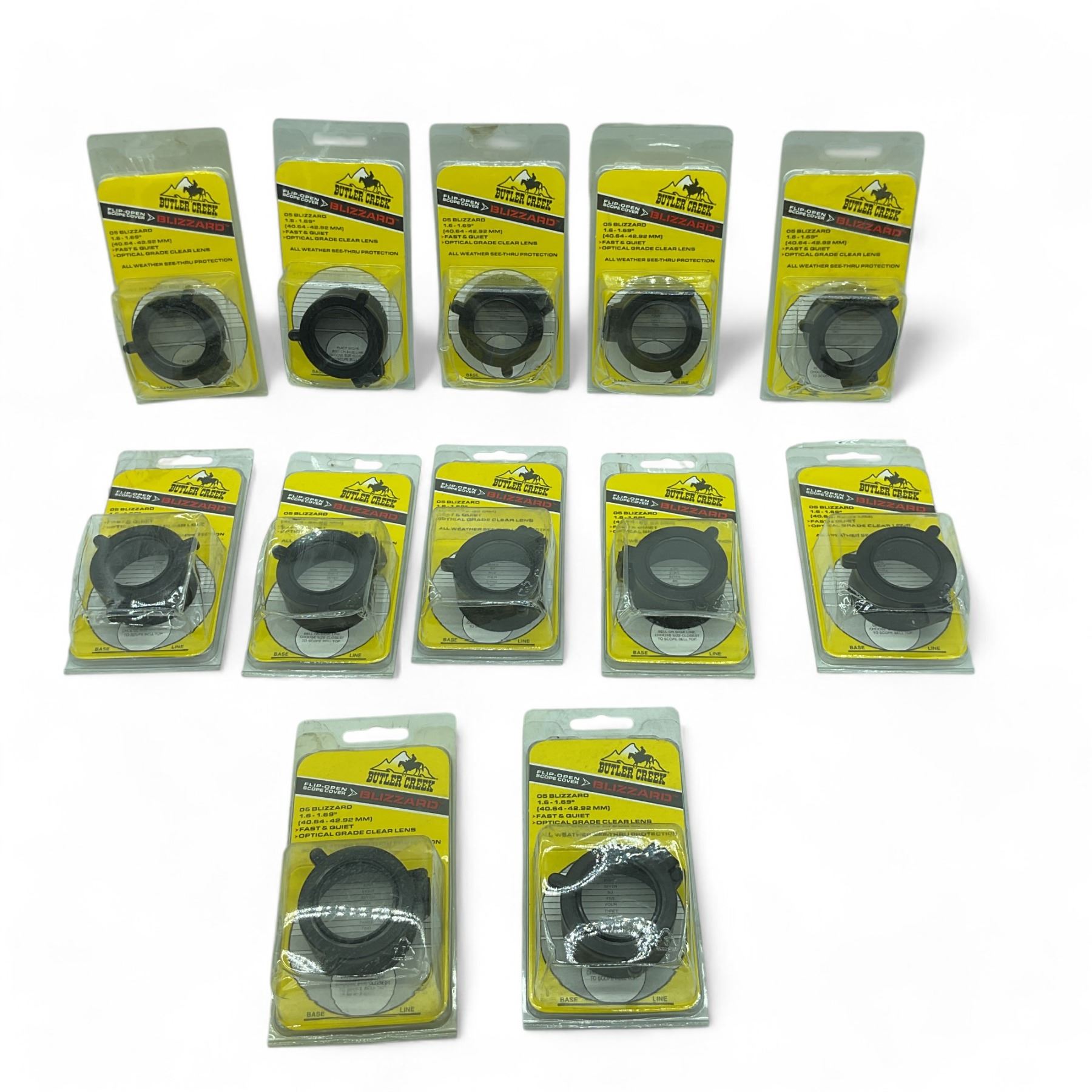 Lot 6145 Butler Creek Flip-Open Scope Cover, 05 Blizzard 1.6 - 1.69" X 12 Qty