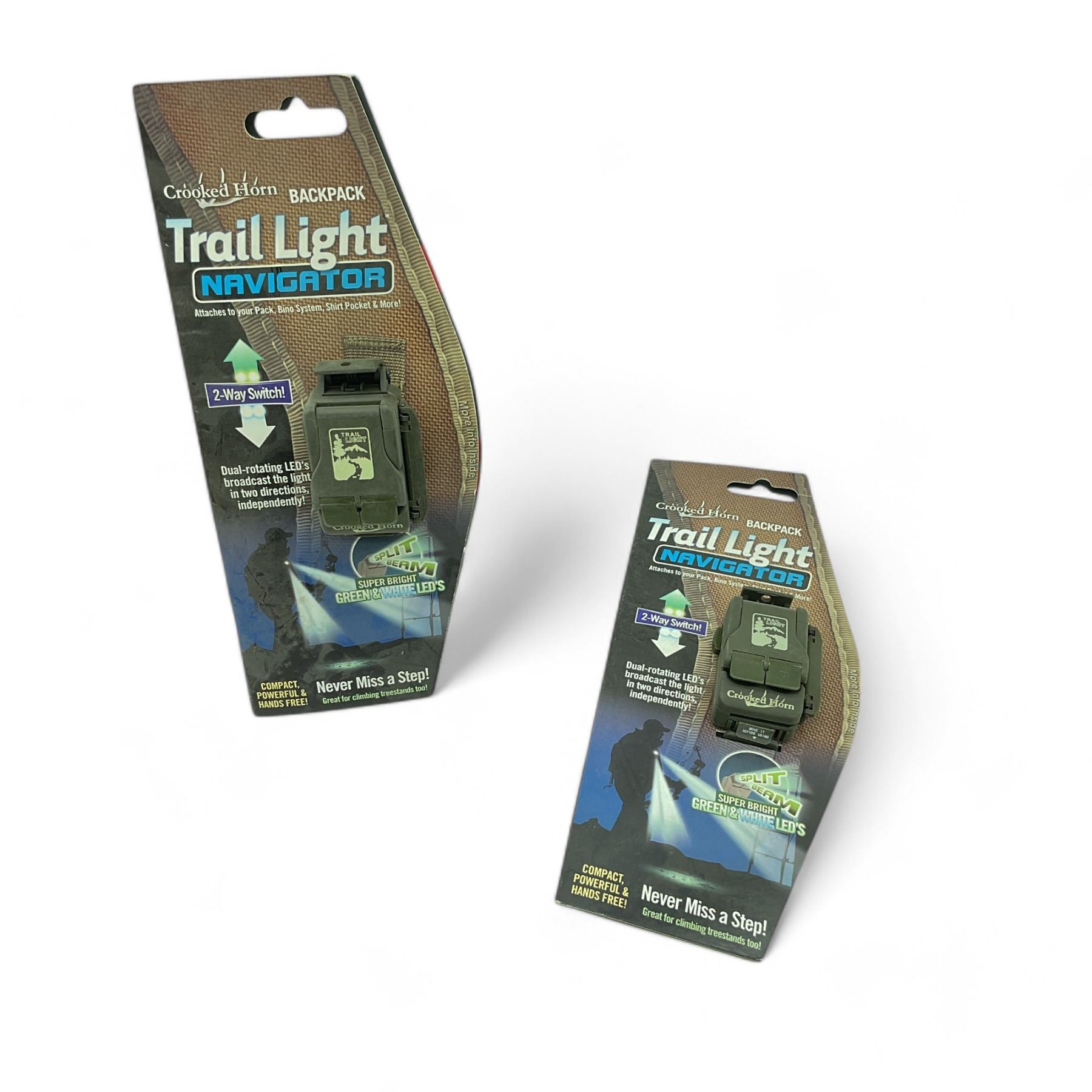 Lot 6268 Crooked Horn Backpack Trail Light Navigator, Green and White LED Light, 20 Lumens X 2 Qty