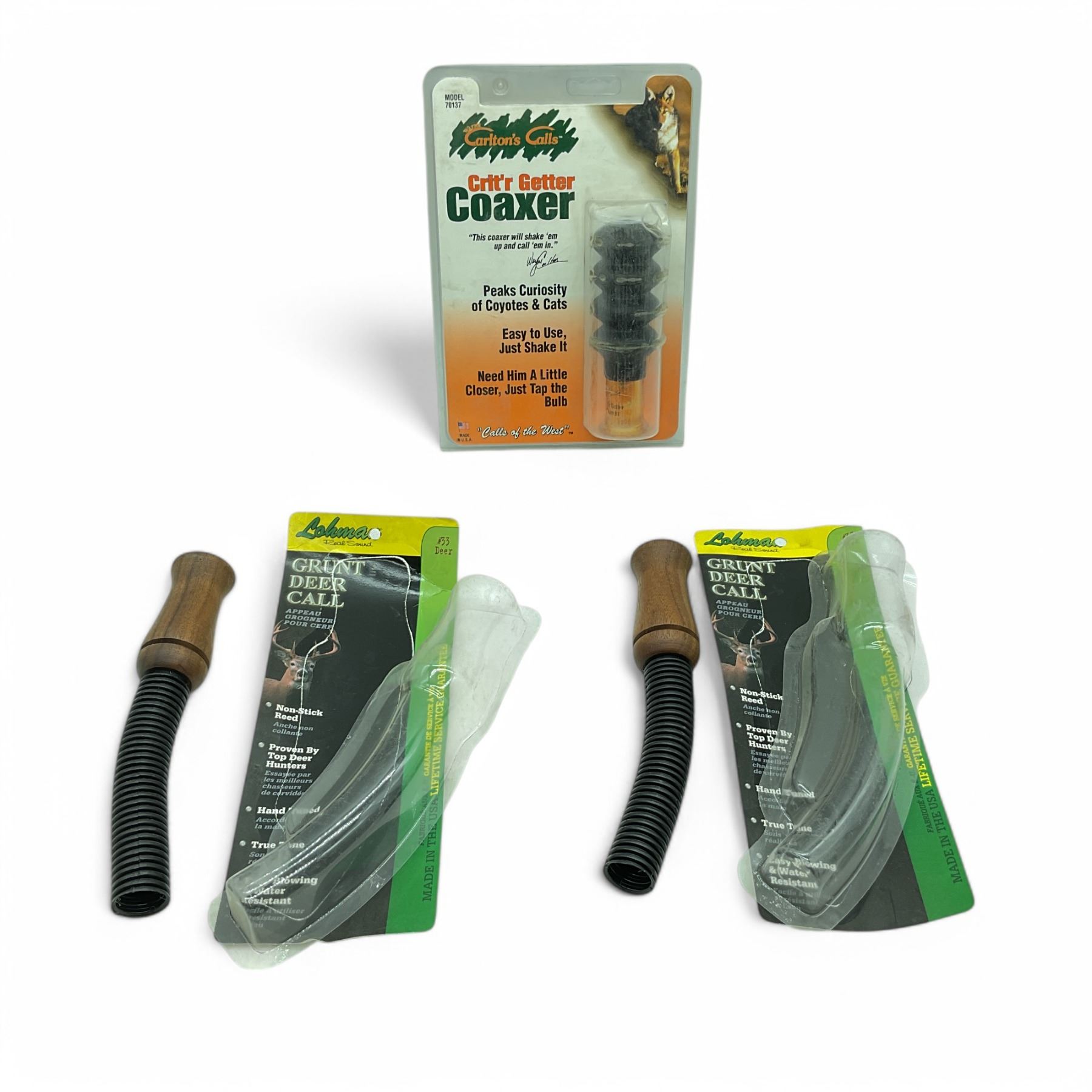 Lohman Grunt Deer Call X 2 Qty and Wayne Carlton's Calls Crit'r Getter Coaxer X 1 Qty