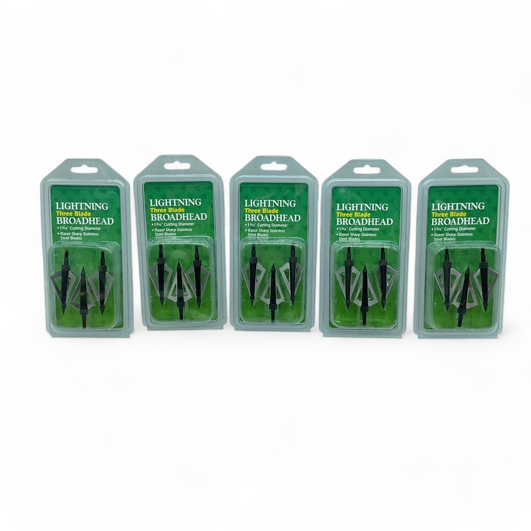 Lot 6428 Lightning Three Blade Broadheads, 1-3/16" Cut Diameter, 3 Pack X 5 Qty