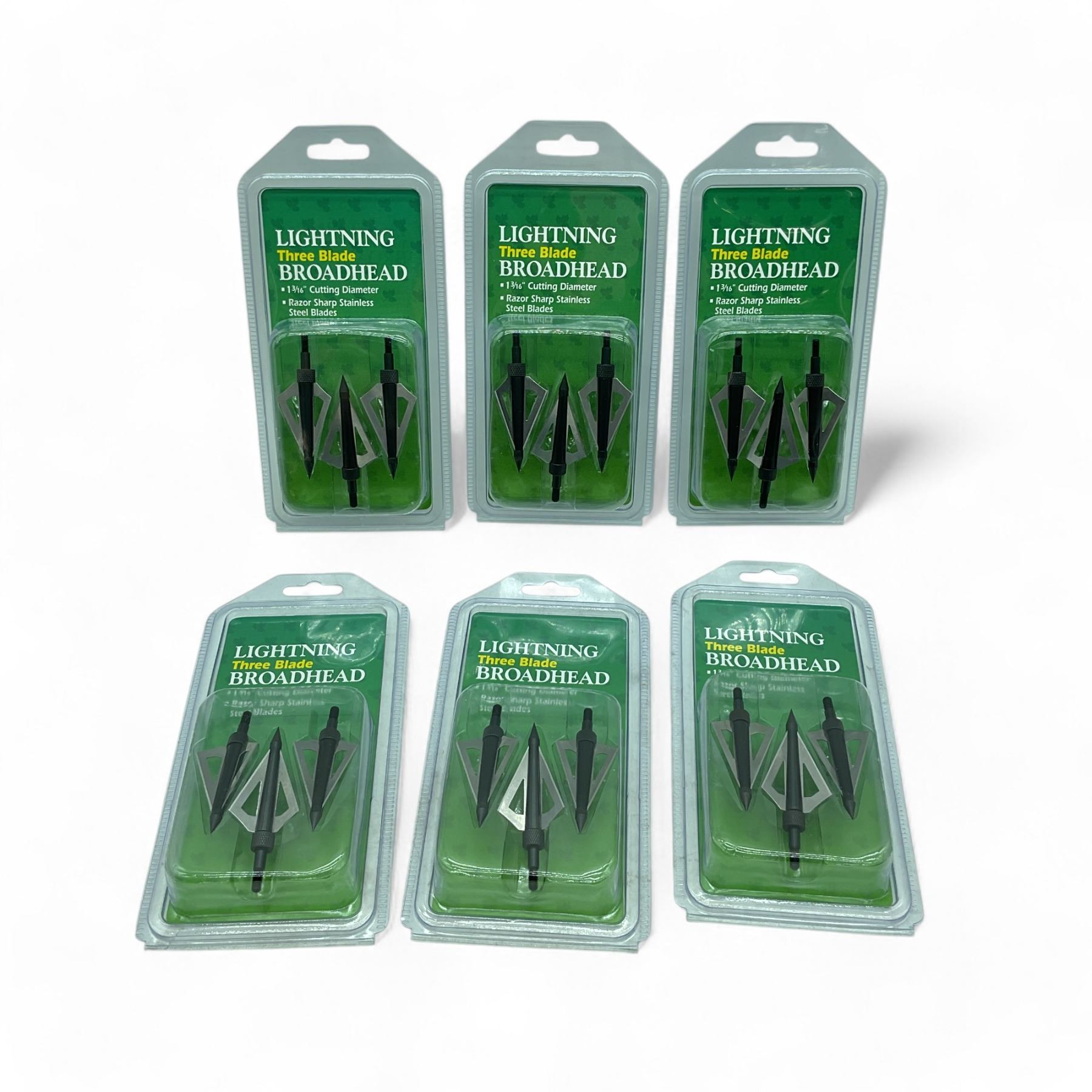 Lot 6455 Lightning Three Blade Broadheads, 1-3/16" Cut Diameter, 3 Pack X 6 Qty