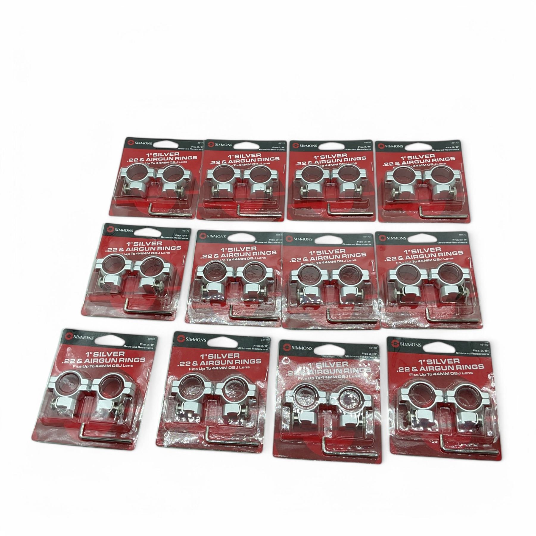 Lot 6765 Simmons 1" Medium, .22 and Air Gun Ring Set, Fits Up to 44 mm Obj Lens, Silver X 12 Qty