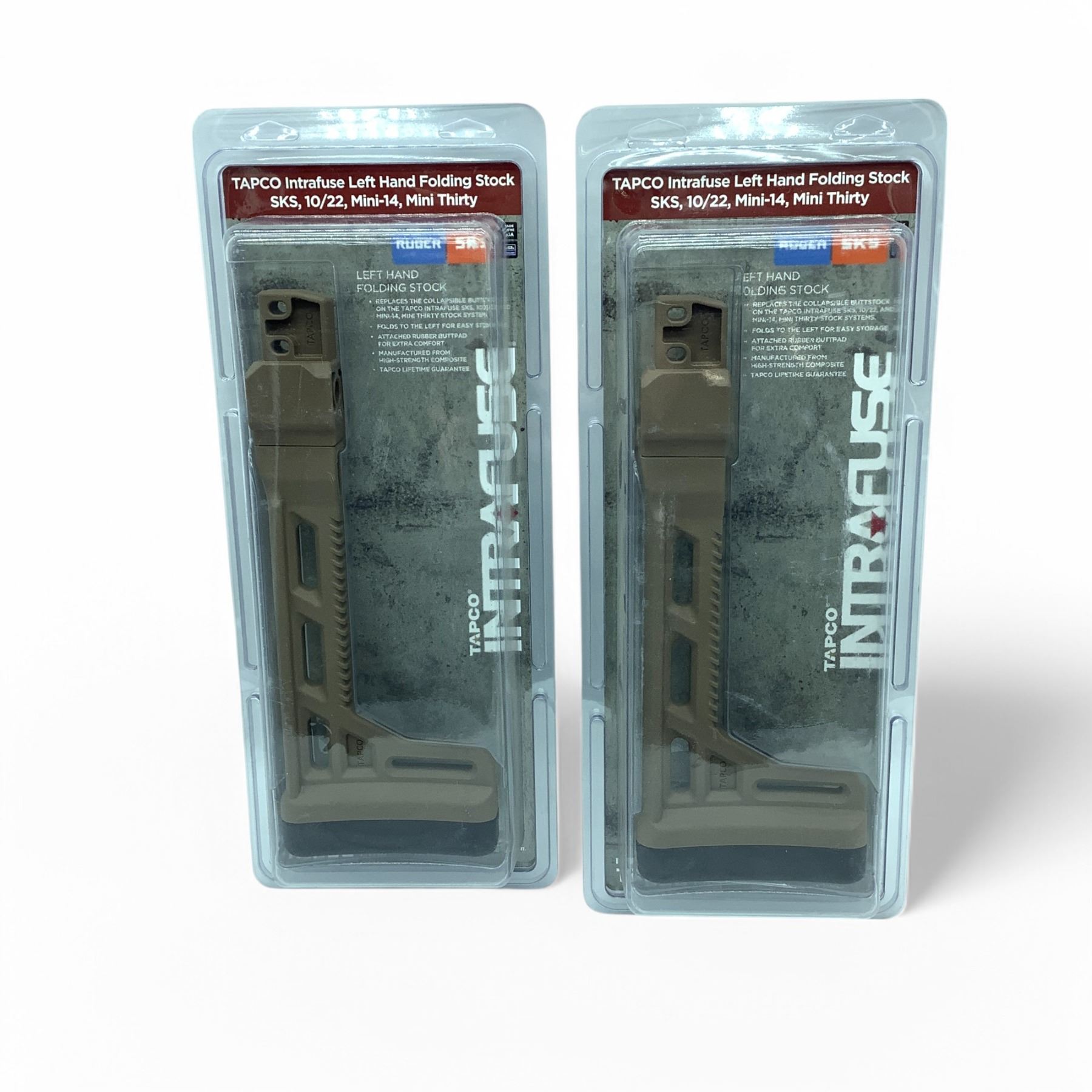 Lot 6799 Tapco Intrafuse Tan Left Hand Folding Stock for SKS, 10/ 22, Mini 14, Mini Thirty X 2 Qty