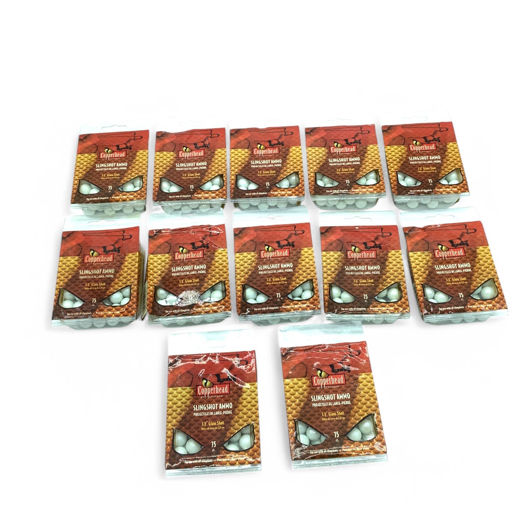 Lot 6803 Crosman Copperhead 1/2" Glass Shot Sling Shot Ammo, 75 Pack X 12 Qty
