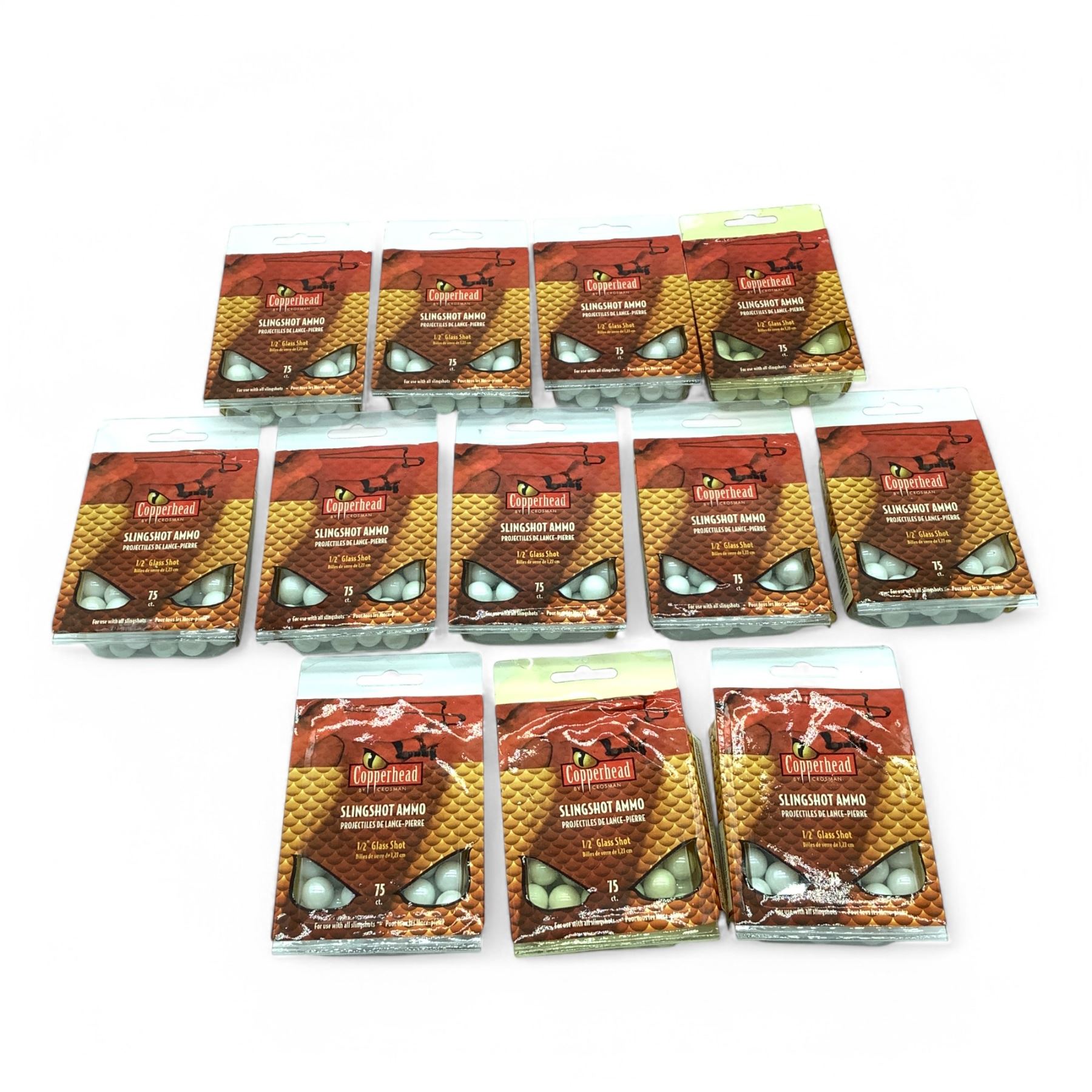 Crosman Copperhead 1/2" Glass Shot Sling Shot Ammo, 75 Pack X 12 Qty