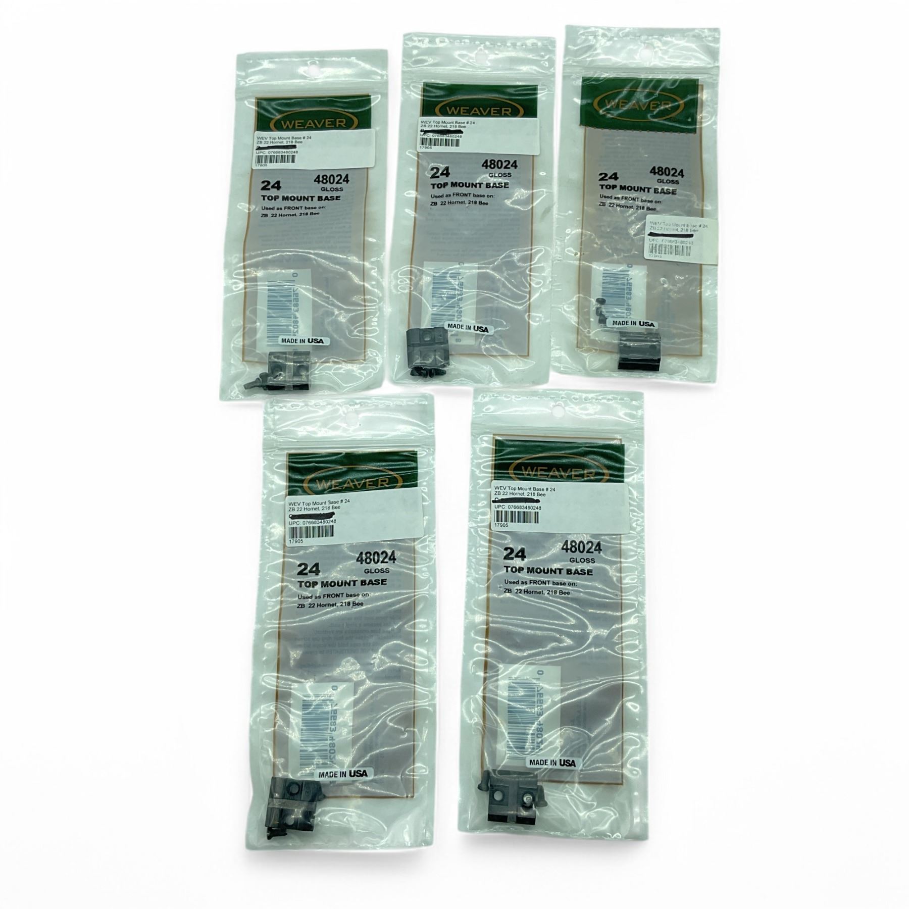 Lot 361 Weaver Top Mount Base #24 for ZB 22 Hornet, 218 Bee, Black X 5 Qty