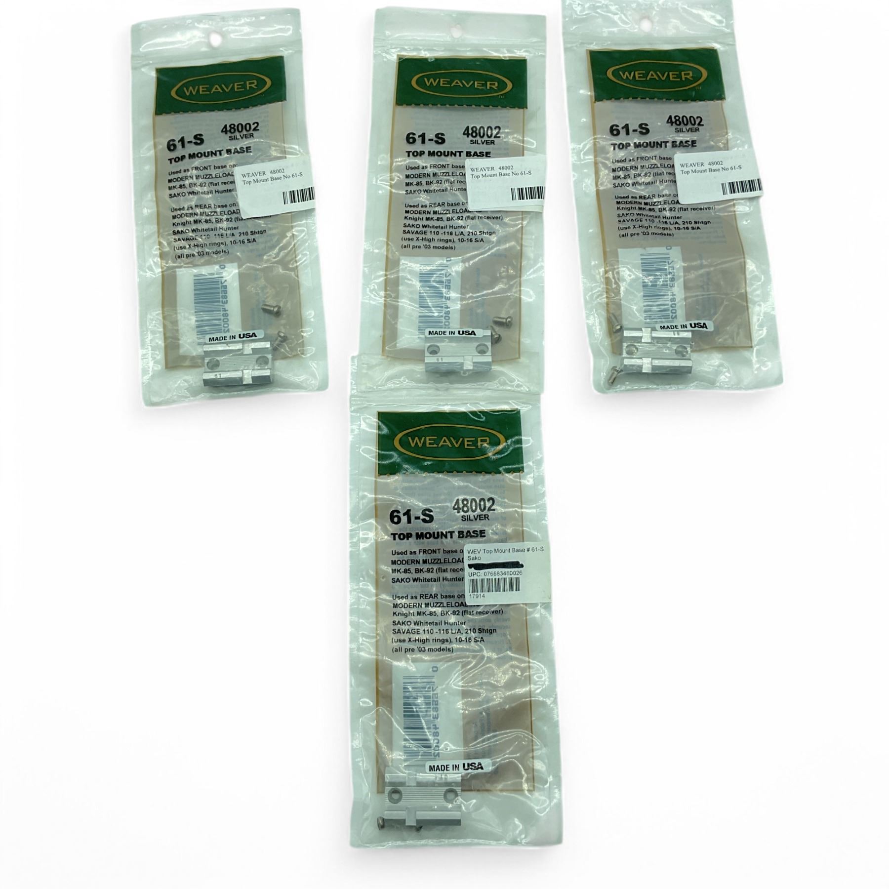 Lot 362 Weaver Top Mount Base #61-S for Front Base or Rear Base on Modern Muzzleloaders, Silver X 4 Qty