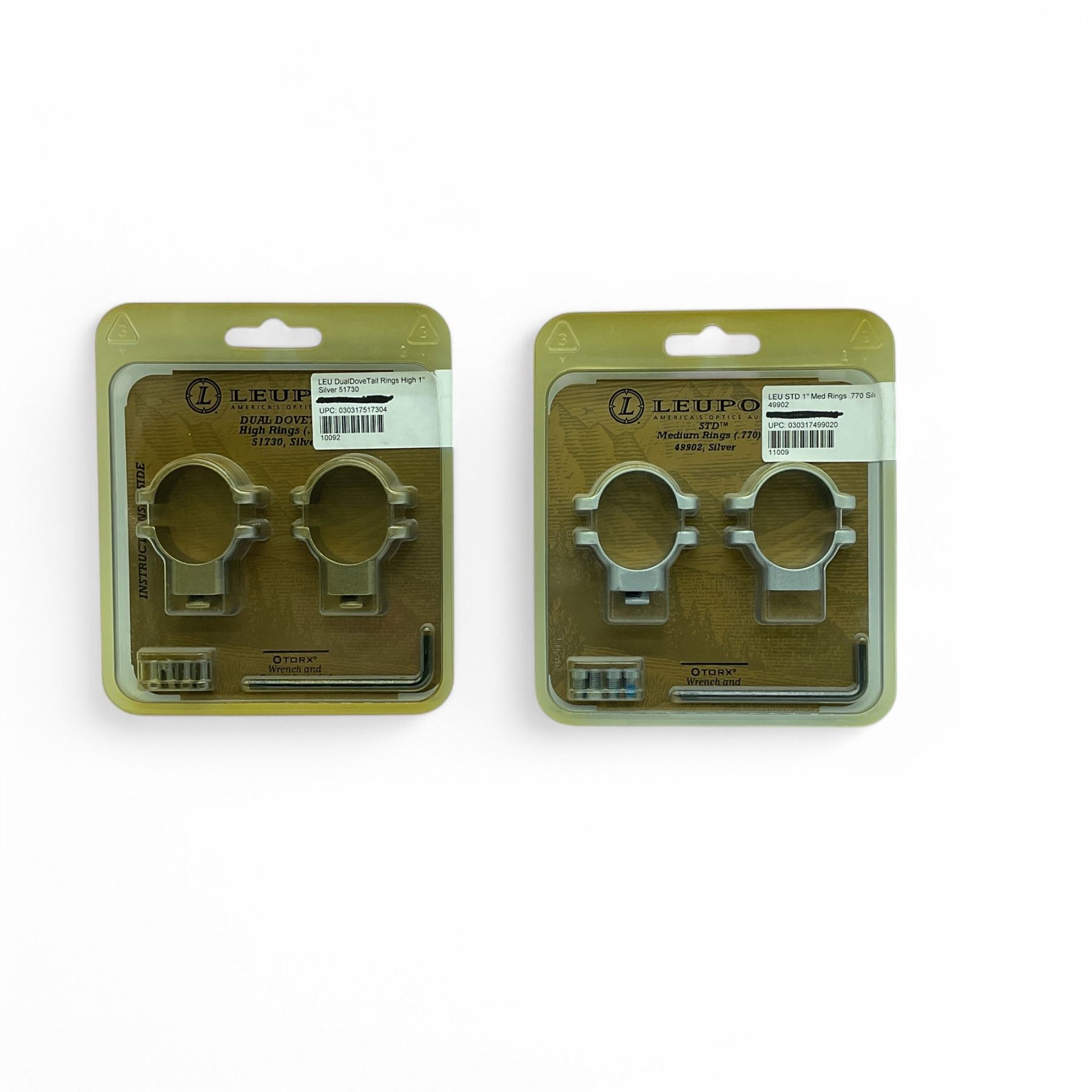 Lot 388 Leupold Standard 1" Medium Rings, Silver and Leupold Dual Dovetail 1" High Rings, Silver