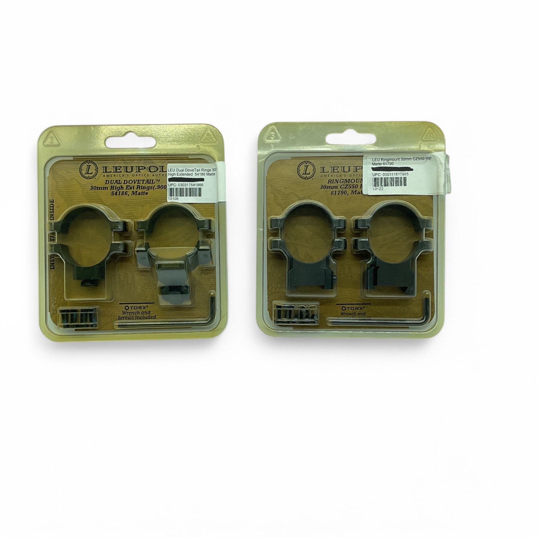 Lot 389 Leupold Dual Dovetail 30mm High Extended Rings, Black and Leupold Ring Mount 30mm CZ550 High, Black