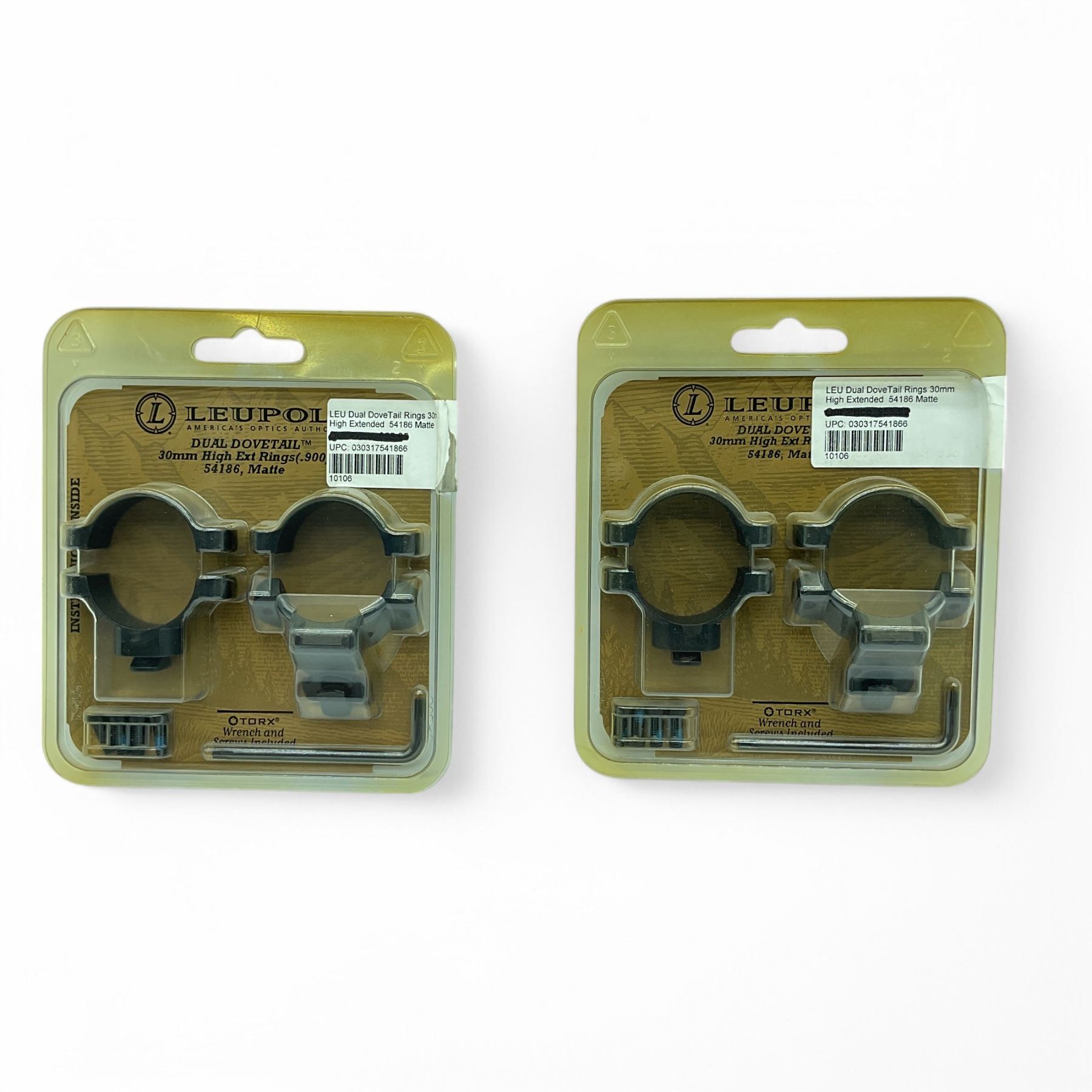 Lot 421 Leupold Dual Dovetail 30mm High Extended Rings, Black X 2 Qty