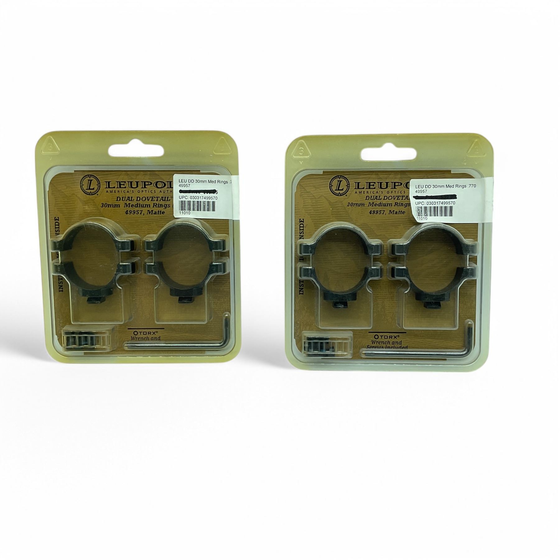Lot 422 Leupold Dual Dovetail 30mm Medium Rings, Black X 2 Qty
