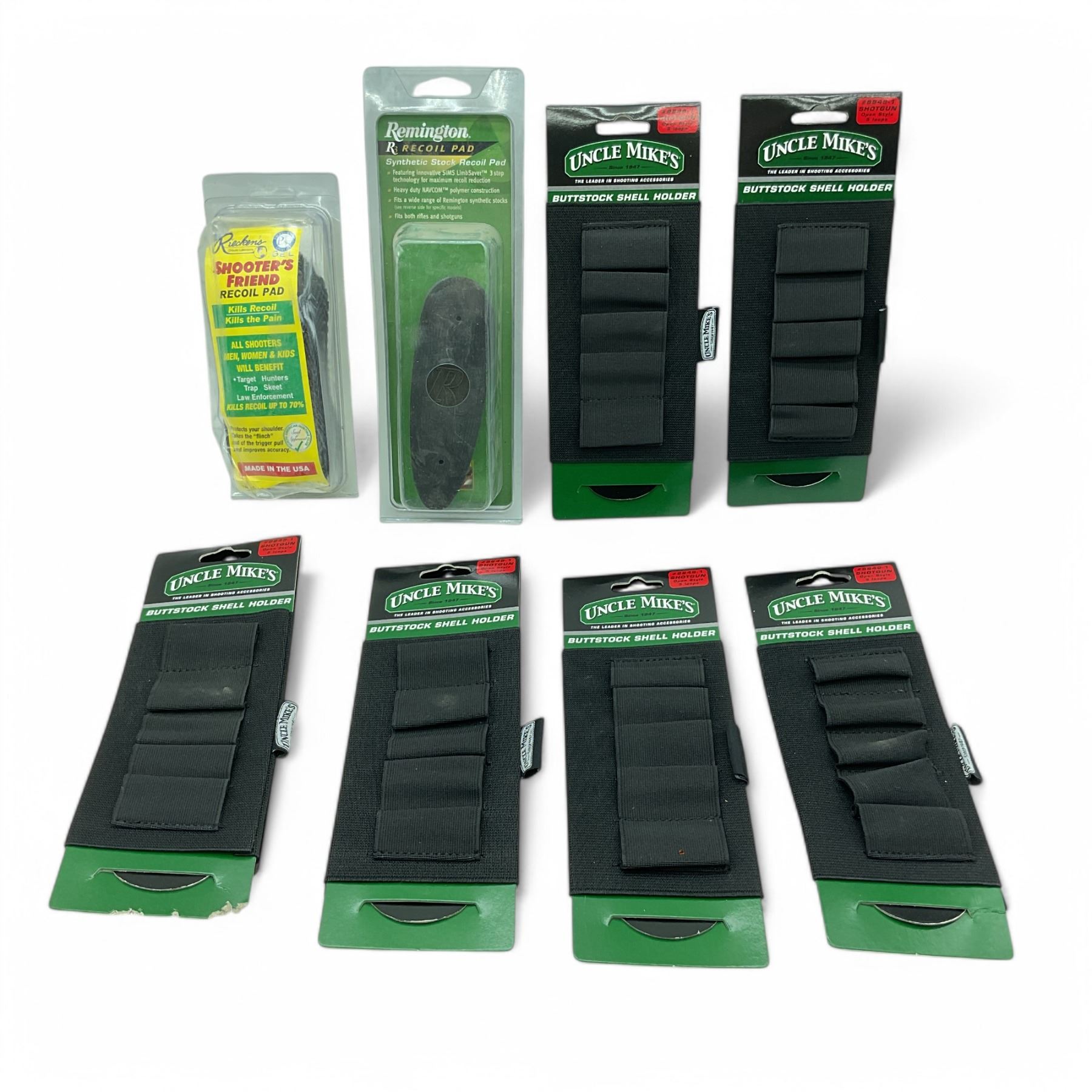 Lot 6448 Assorted Recoil Pads X 2 Qty and Uncle Mike's Shotgun Buttstock Shell Holder X 6 Qty