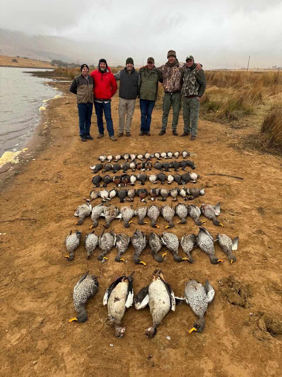 High volume decoyed Duck shooting is done in dry blinds near water (no waders). Experience flight after flight of Yellow-billed Ducks and Red-Billed Teal coming into roosting ponds in the early afternoon. Expect 10-20 birds per gun per shoot.