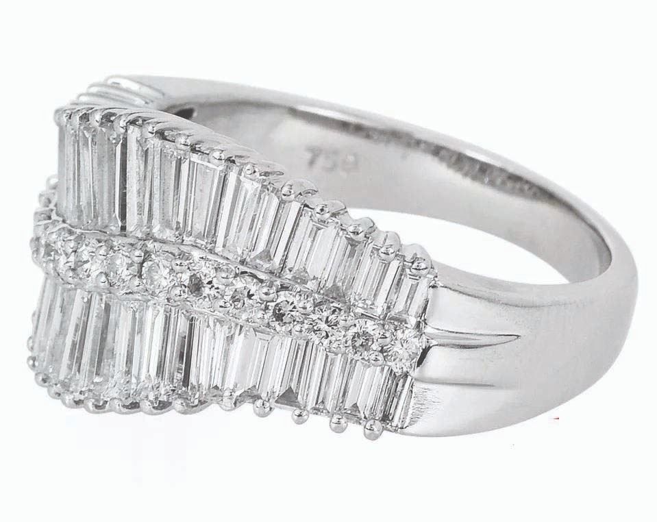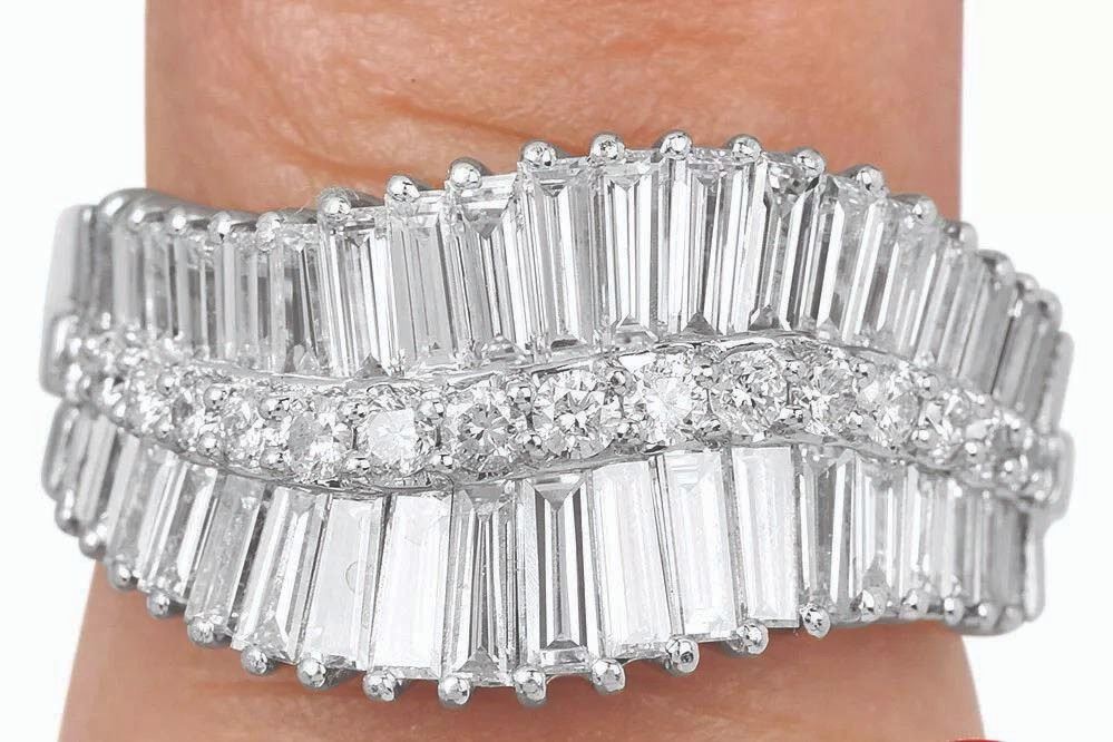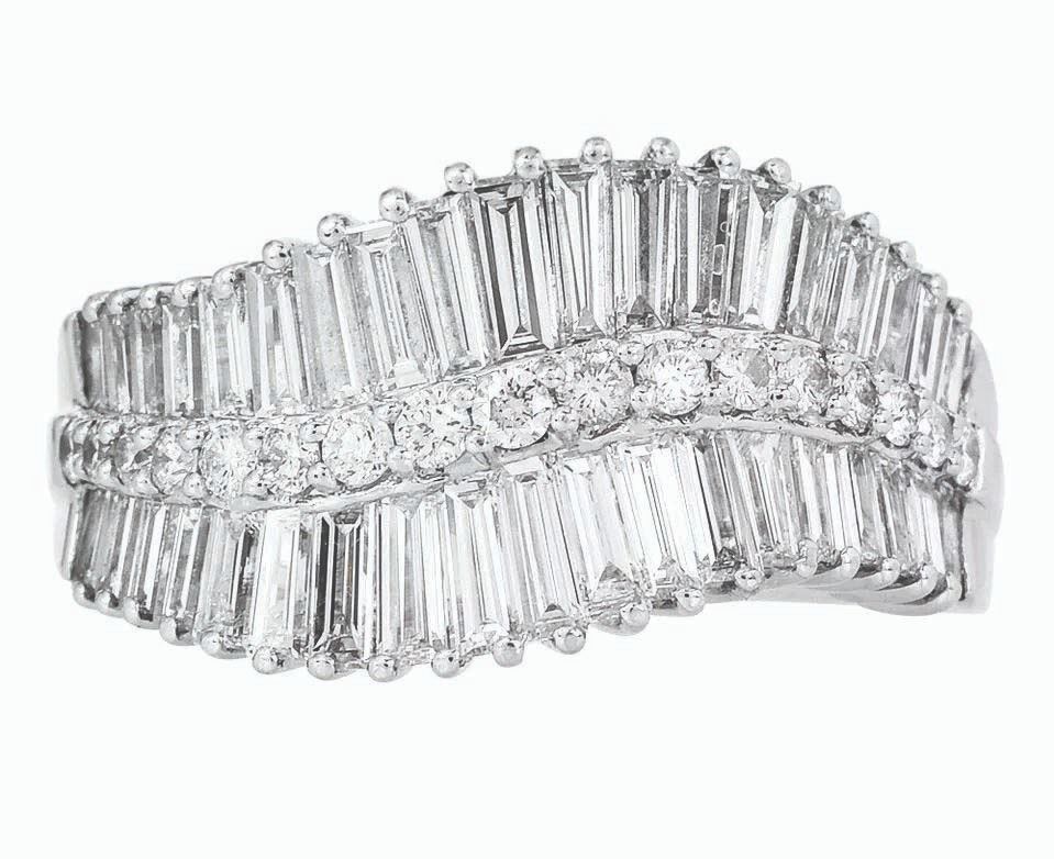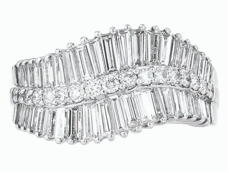 •Features a total of 38 straight and tapered baguette cut, and 17 round brilliant cut diamonds.