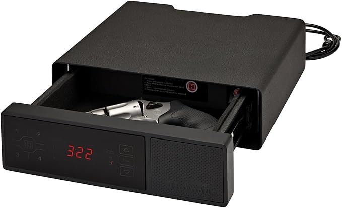 Discreet, Secure, Touch-Free Entry - the Hornady Rapid Safe Night Guard, 98215 keeps your handgun safes for pistols as close as your nightstand. It's hidden in plain sight, plus the additional functionality of a clock and USB charging points, use it as your bedroom gun safe, living room safe, or closet safe