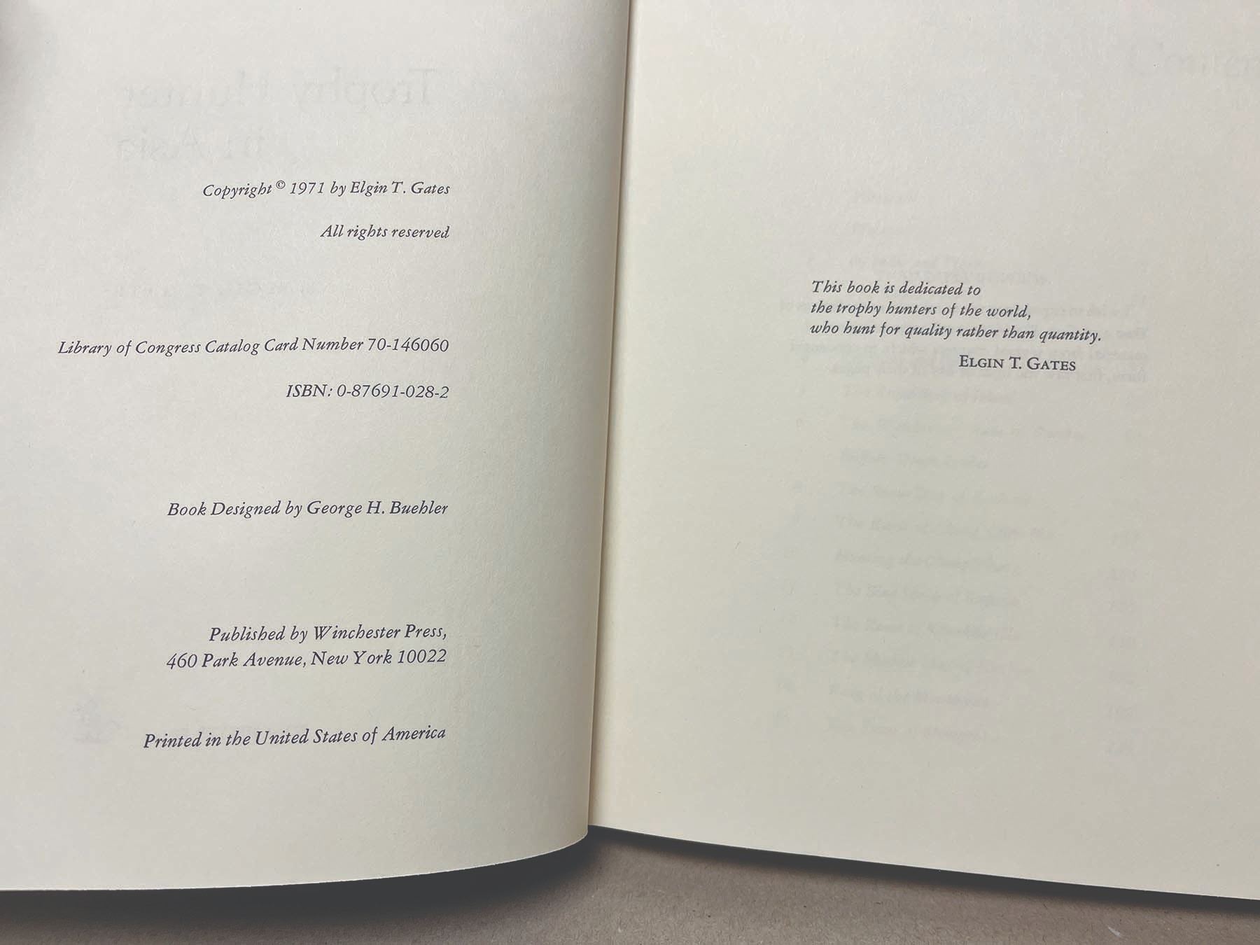 •This is a hardback copy of Trophy Hunter in Asia, published in 1971 by Winchester Press.