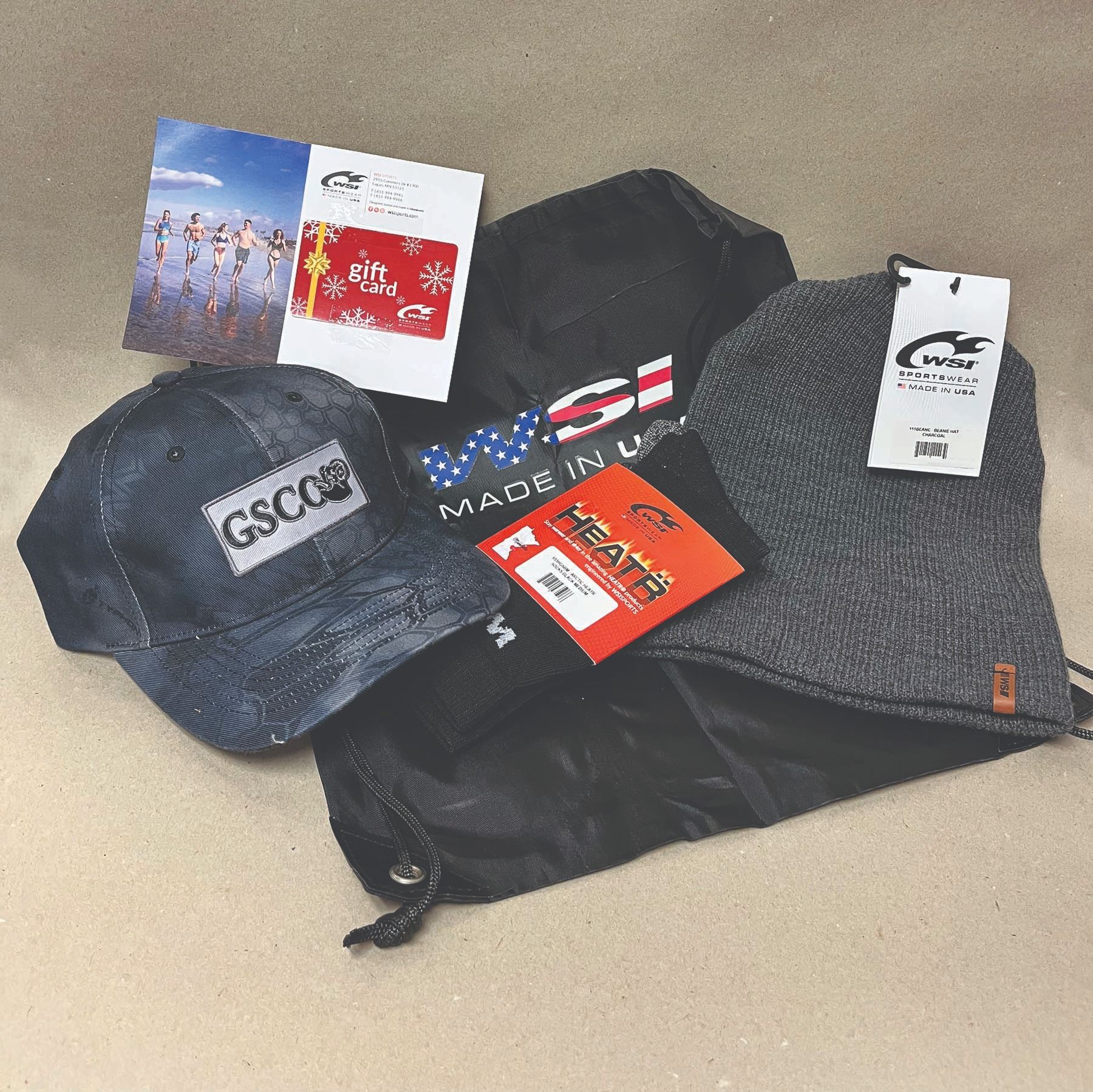 •This fully donated WSI Sportwear package includes a $100 WSI gift card, one charcoal beanie hat,