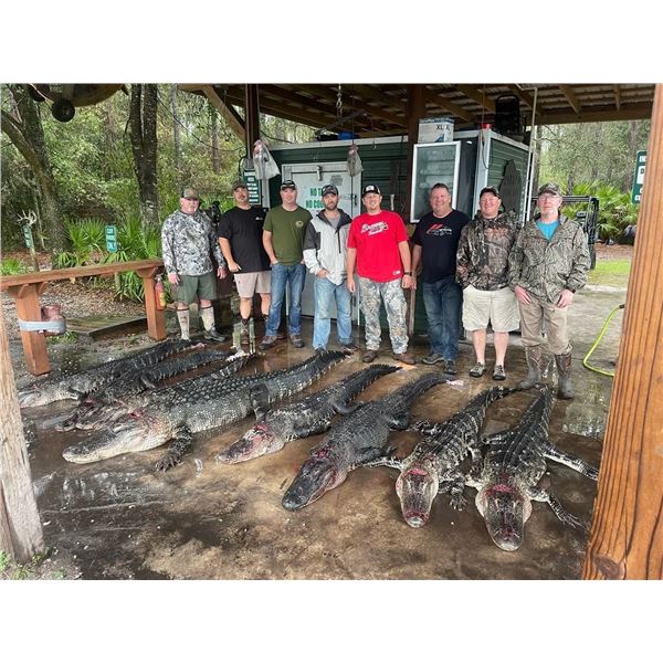 Schedule hunt with outfitter for open dates in 2025 only; see outfitter for details. Two Alligators between 8' and 9'10" (one per hunter) plus 2 days of inshore saltwater fishing for Snook, Redfish, Sea Trout, Tarpon, and more.