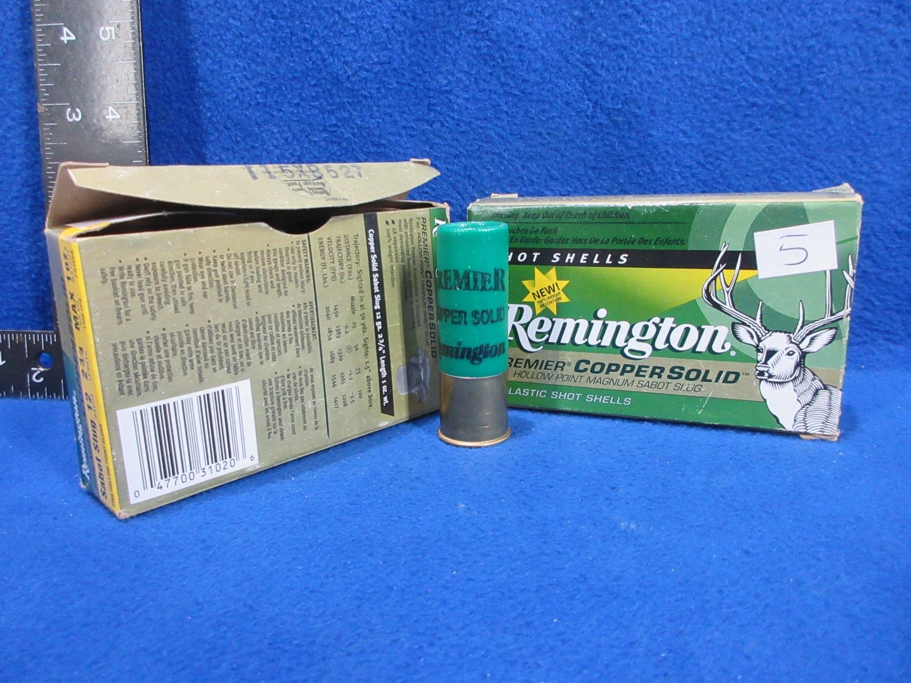 Lot 5 12 Ga. 2 3/4" 1oz Sabot Slug HP Mag Remington Shotshells