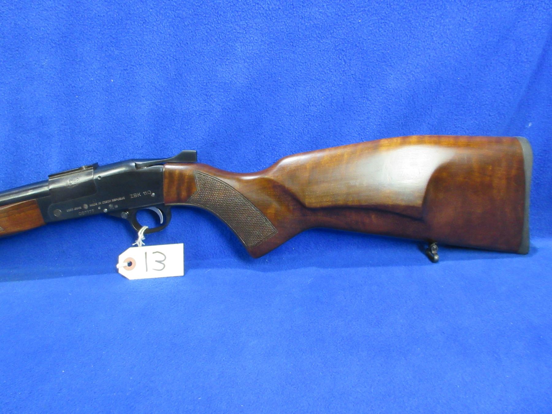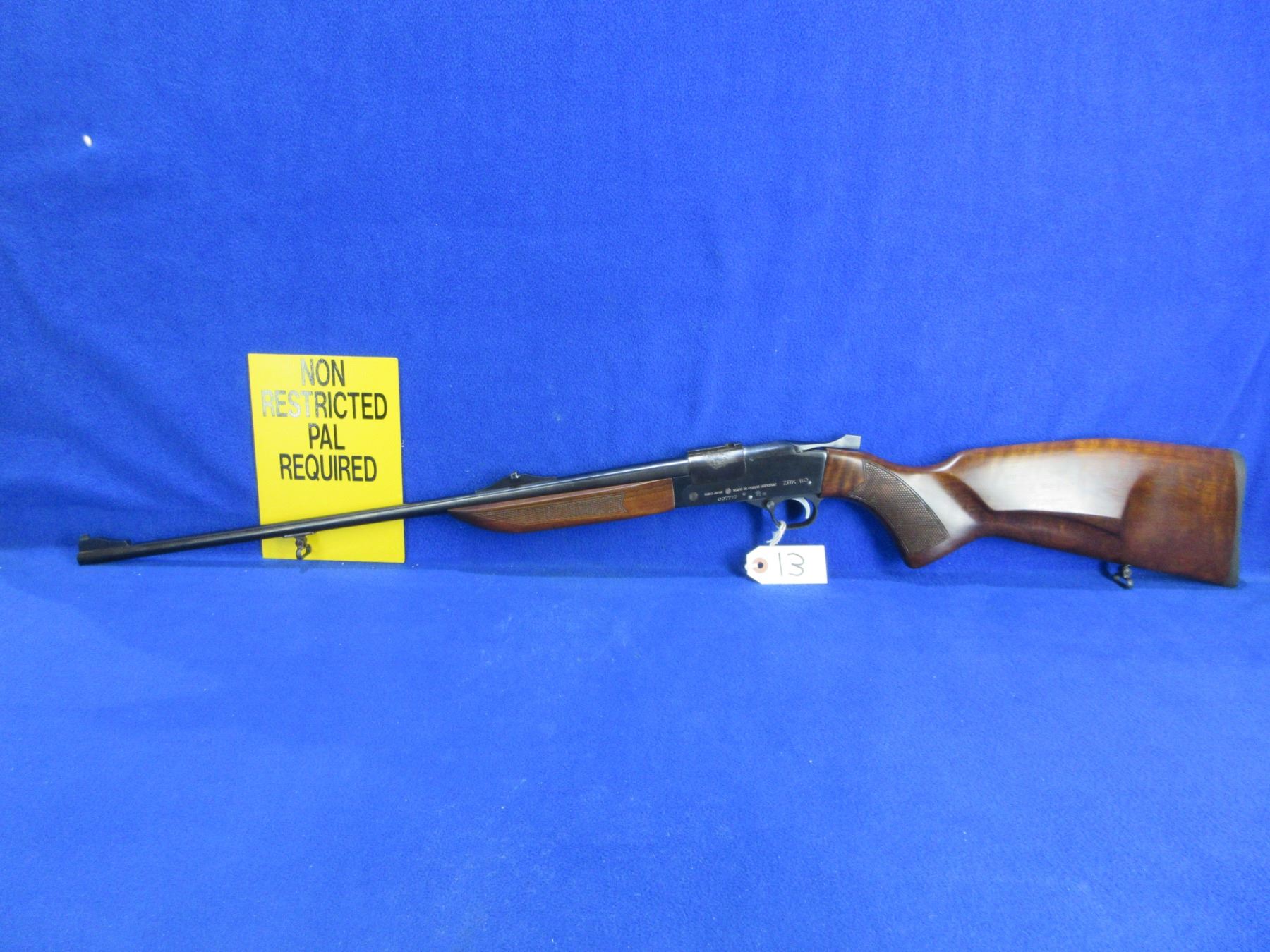 Non-Restricted - BRNO Model ZBK 110 in 222 Rem - This single shot tip up rifle appears to be in very good working order. Barrel is 23 5/8", rifling is very good, bluing is good but has one small area of pitting on left side of action, has both sights, stock is good to very good, butt plate good, comes with swivels. Ser # 007777