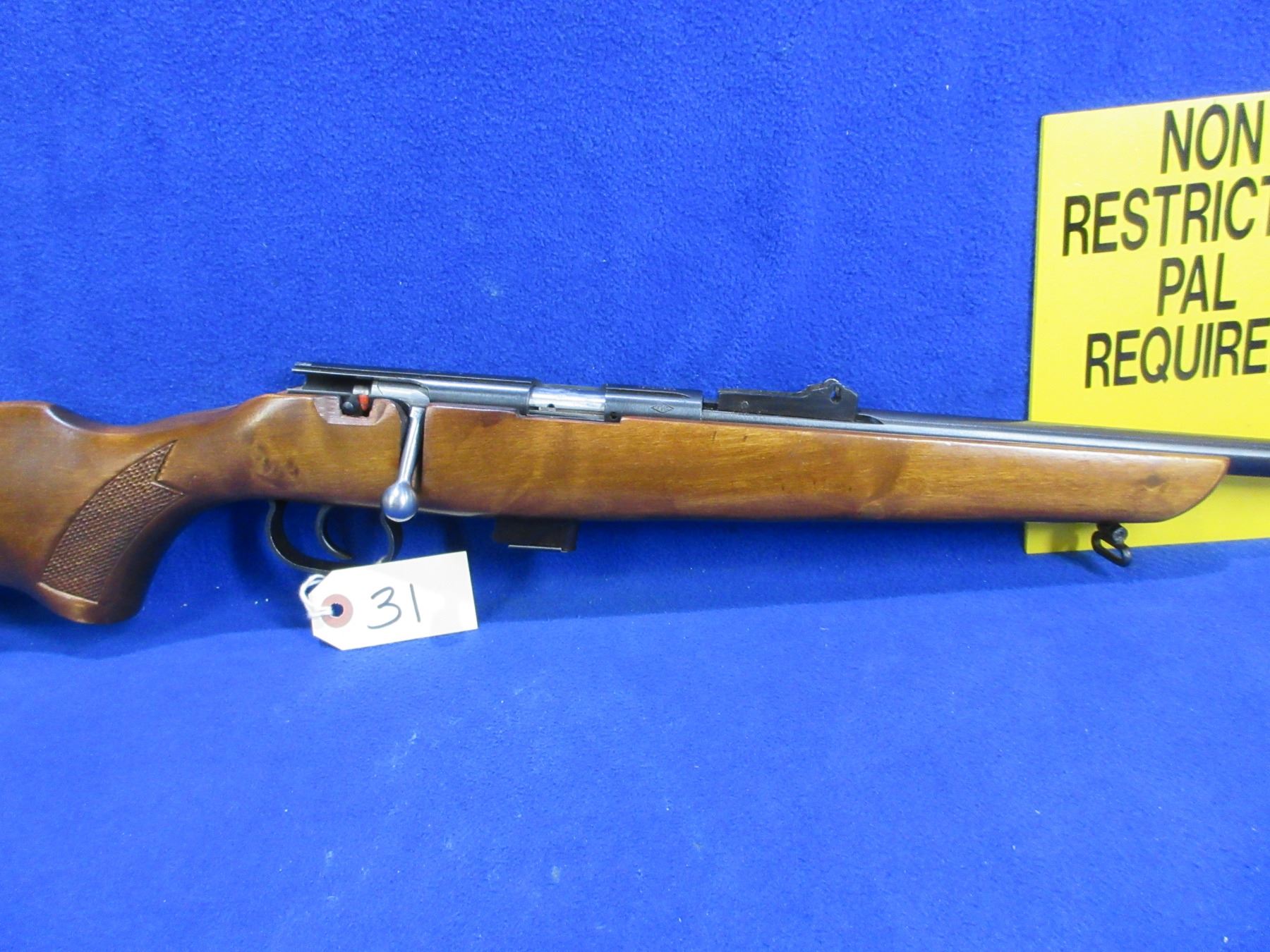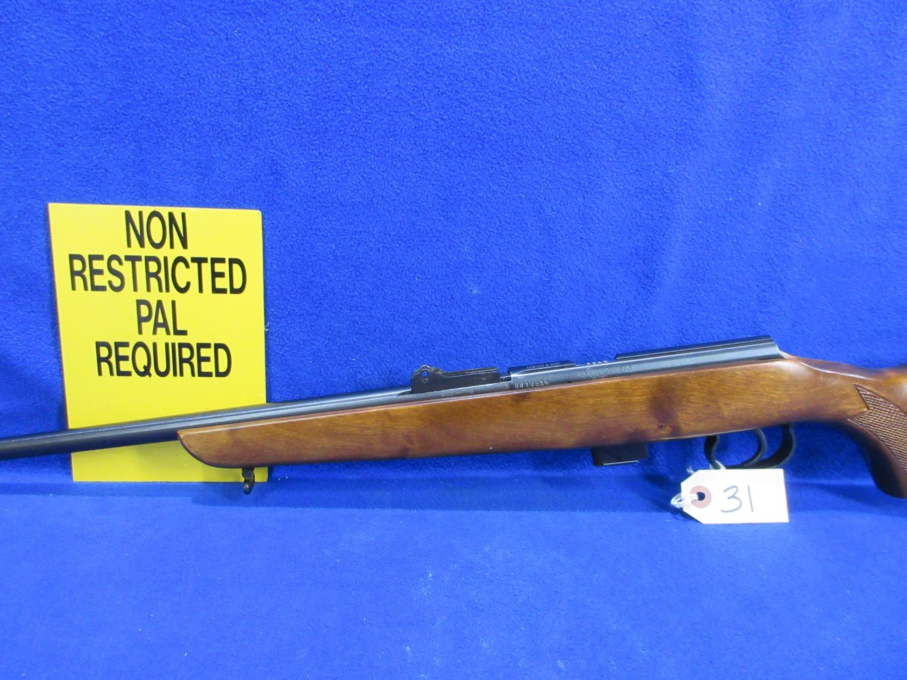 Non-Restricted - TOZ Model 17-01 in 22 LR - This bolt action rifle with removable magazine appears to be in good to very good working order. Barrel is 21", rifling is very good, bluing is good to very good with some wear on the muzzle, has front sight, rear sight missing, stock is good to very good with minor usage marks, butt plate good, comes with fron swivel and rear swivel stud. Ser #8810634