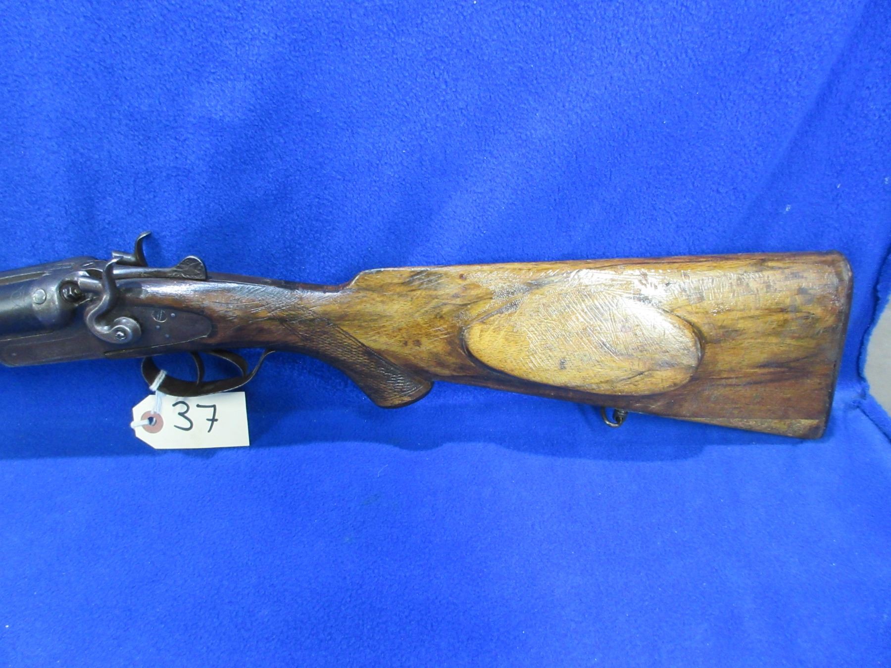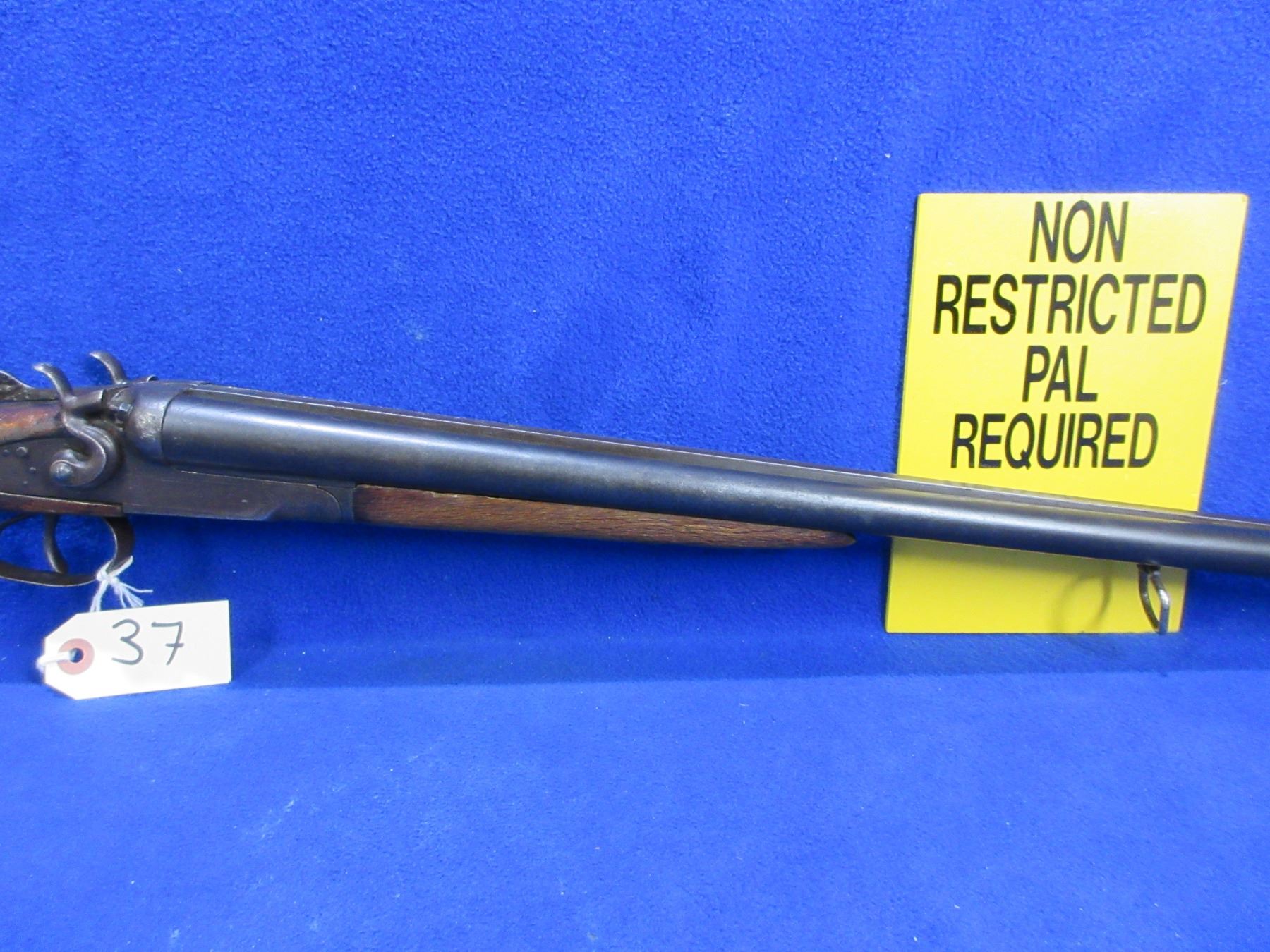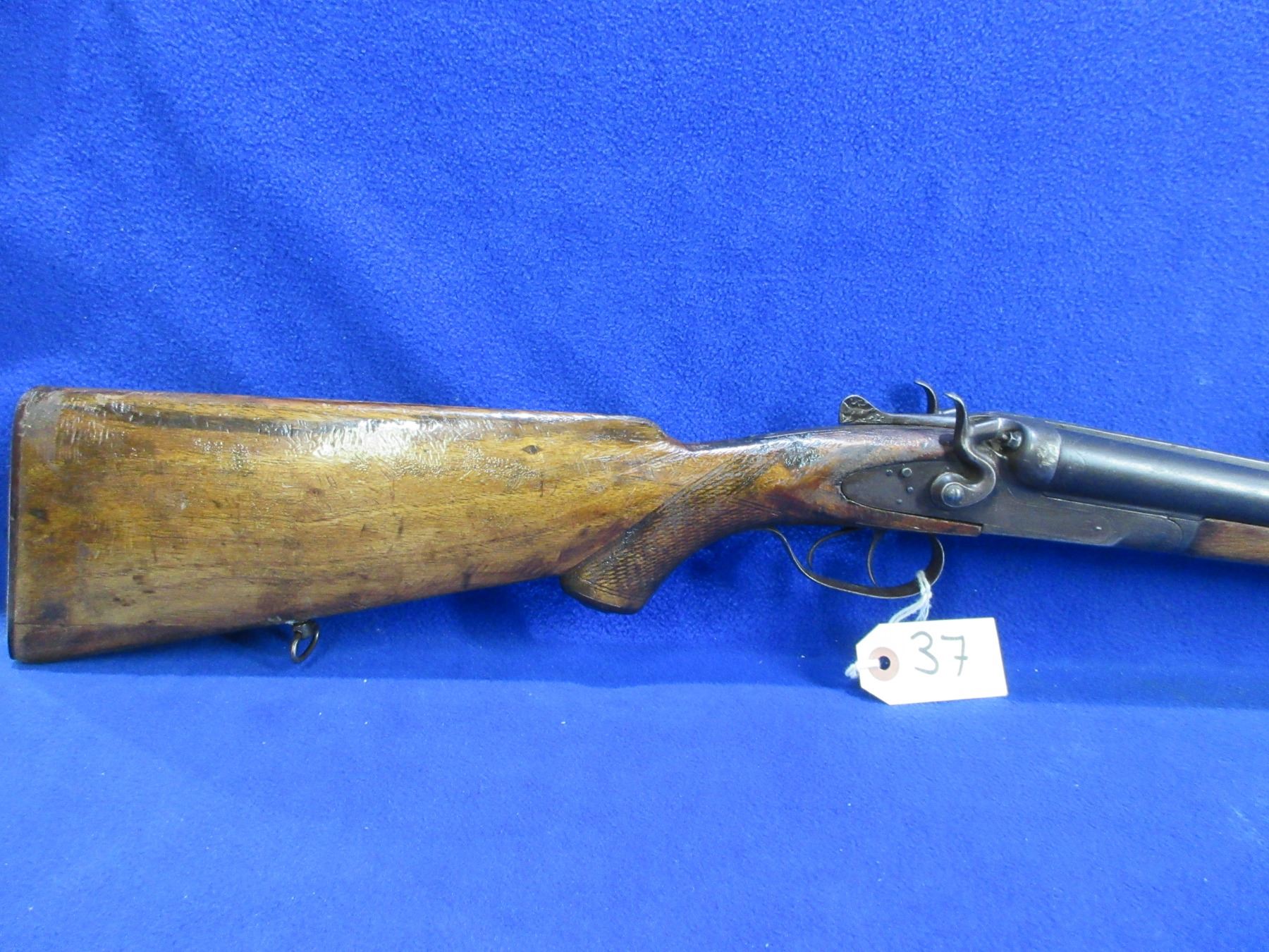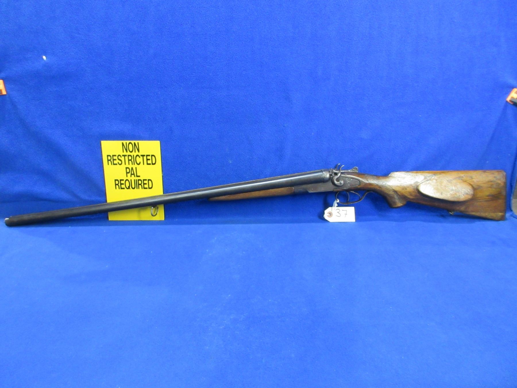 Non-Restricted - TOZ Model M63 in 16 Ga. 2 3/4" - This tip up SXS hammer shotgun appears to be in good working order, action is tight. Left hammer has an incorrect screw. Barrels are 28 5/8", bores are fair, bluing is good with some light pitting, has bead front sight, stock has a large chip repair on the toe and many usage marks, forearm is fair to good for age with many usage marks, butt plate has a chip on the toe, comes with swivels. Ser # X2272-60