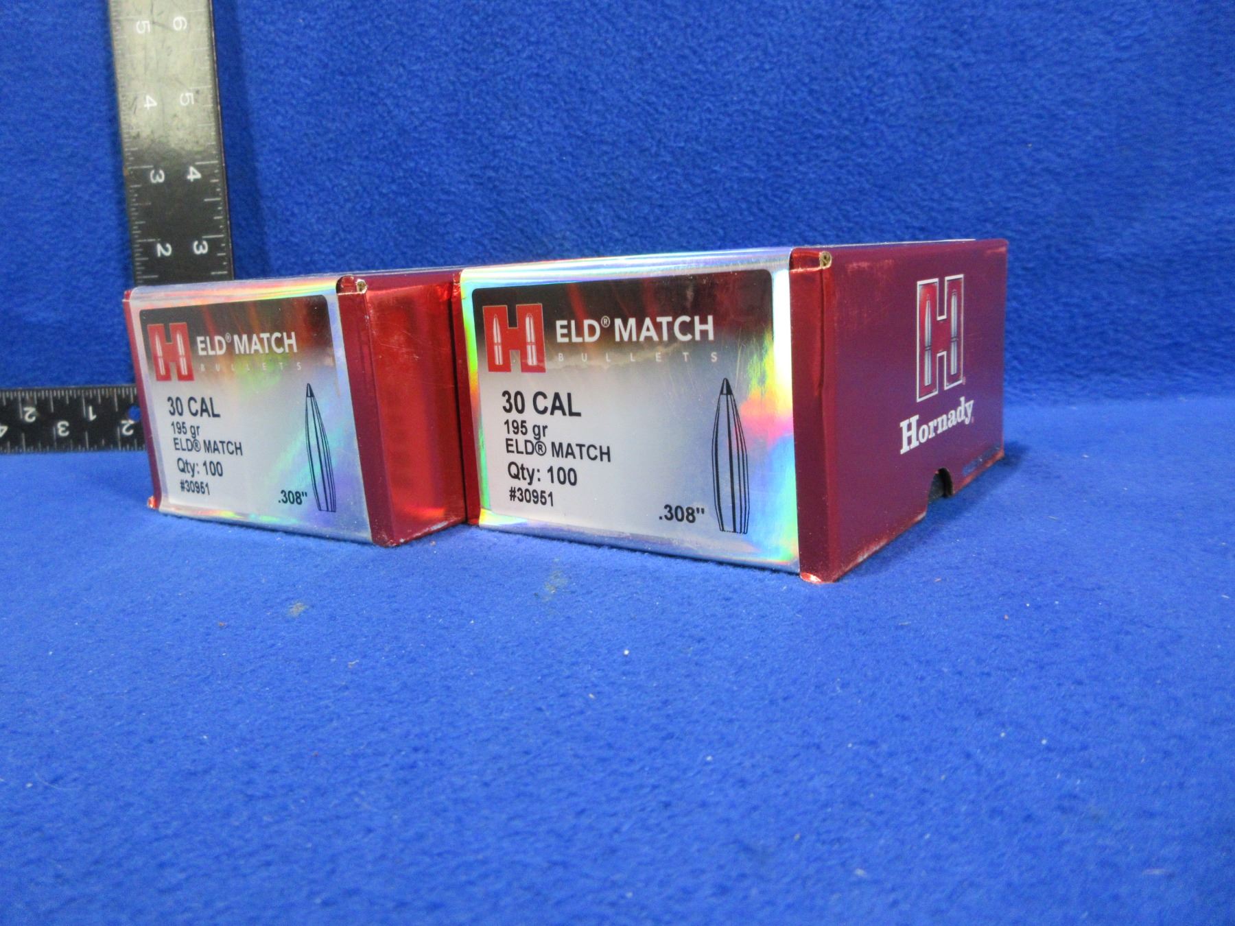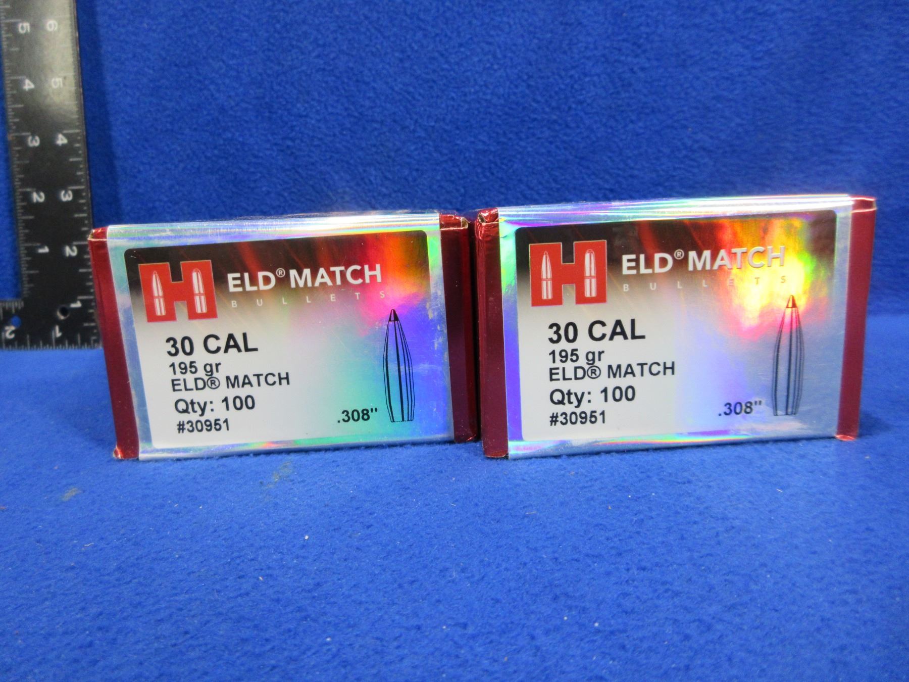 NEW - 30 Cal. .308" 195gr ELD Match Hornady Bullets - 2 Boxes of 100