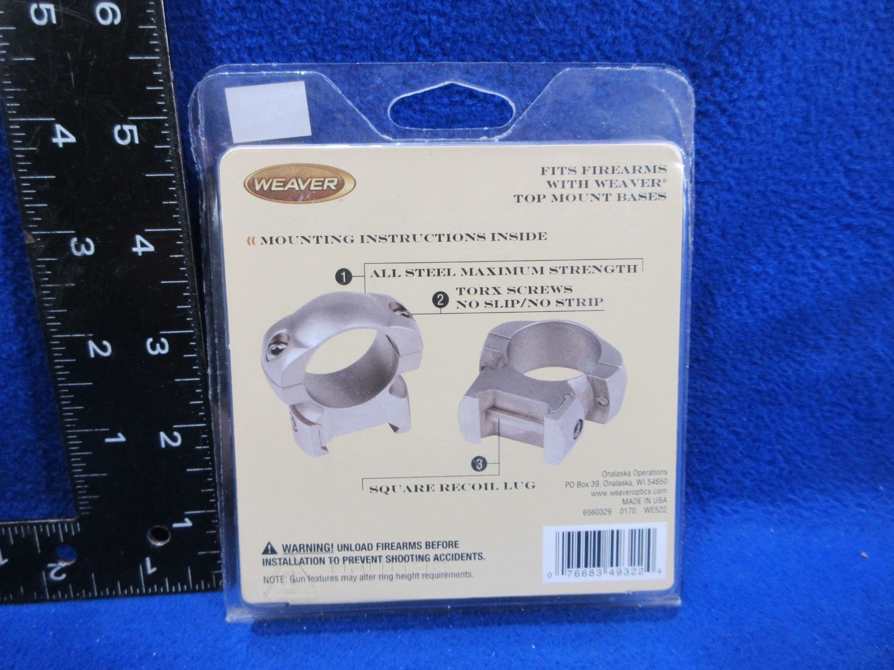 NEW - Weaver Grand Slam 1" High Top Mount Rings - Silver, Solid Steel # 49322