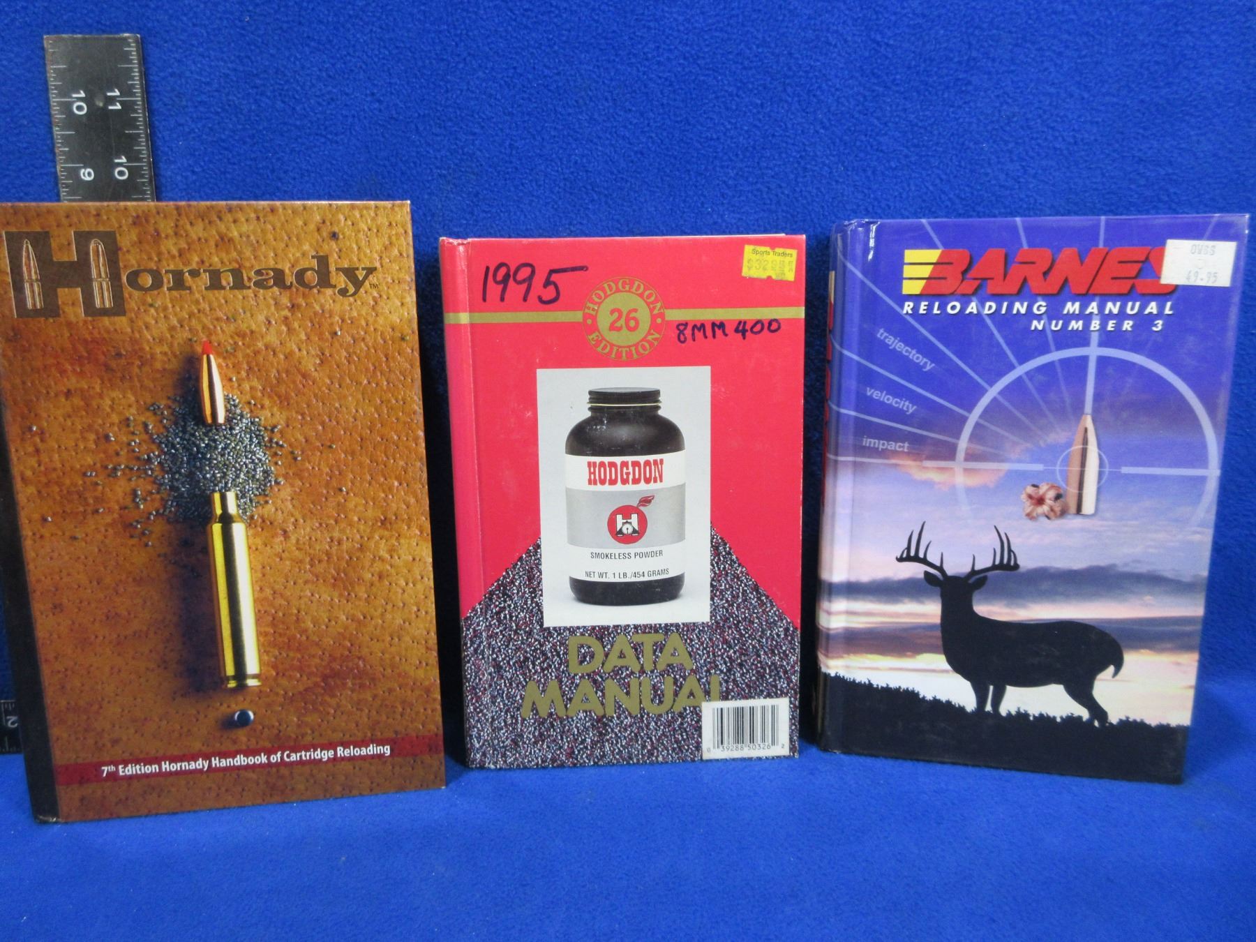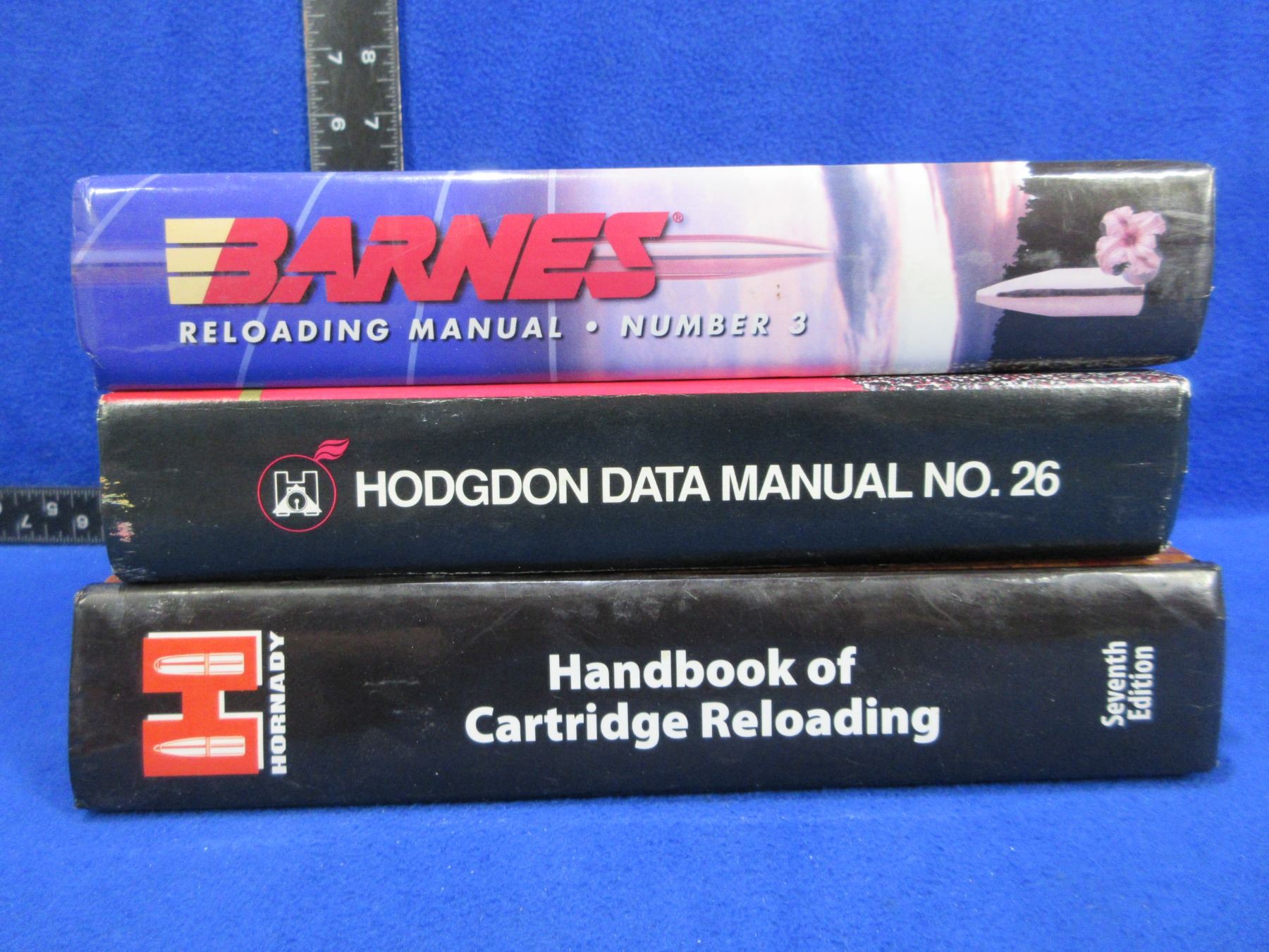 3 Reloading Books - Barnes Reloading Manual No. 3, Hodgdon Data Manual 26th Edition, Hornady Handbook 7th Edition