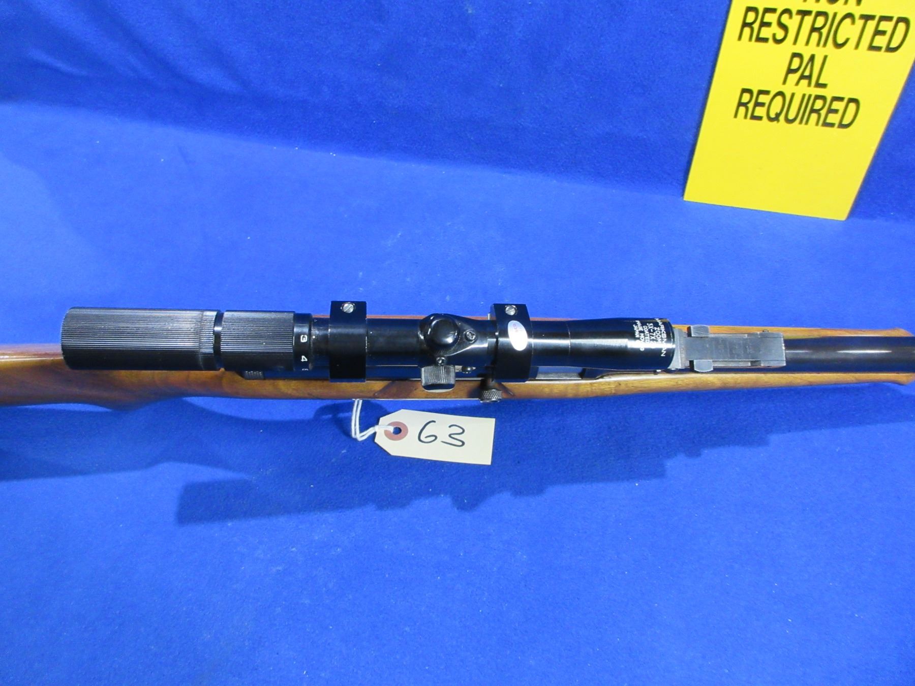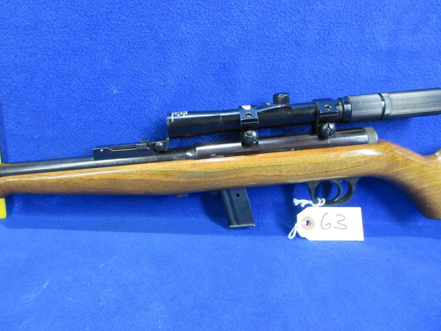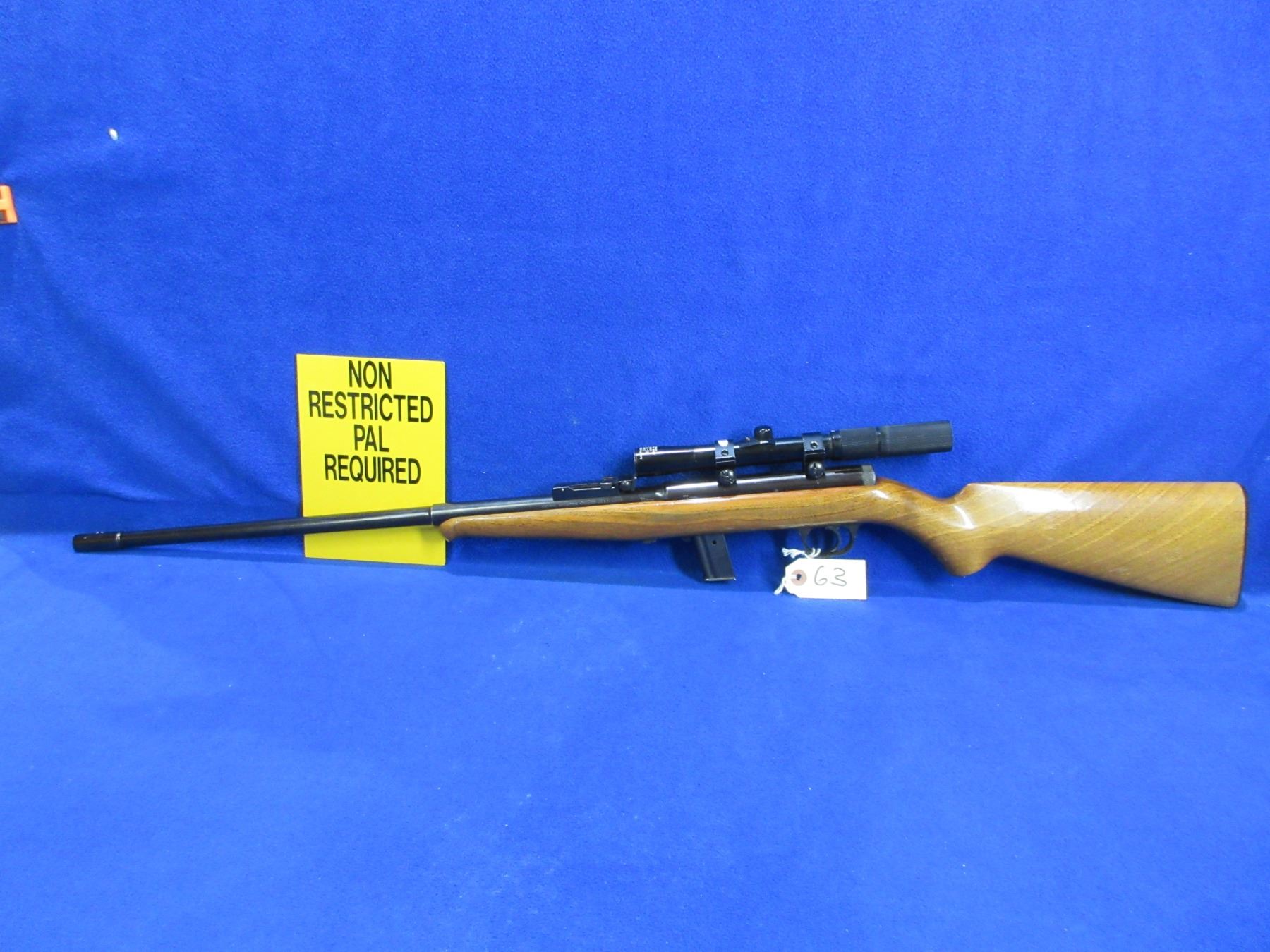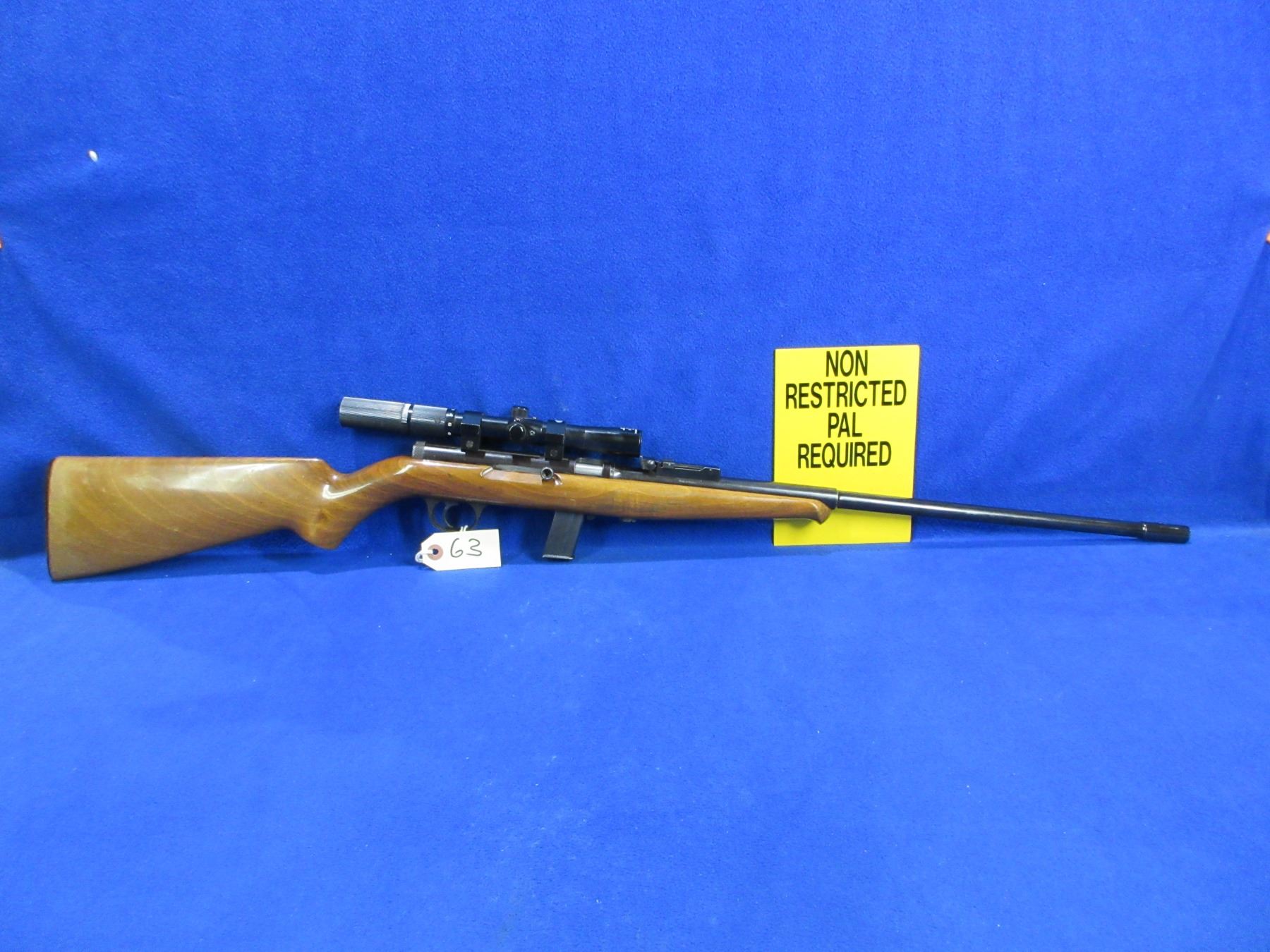 Non-Restricted - Gevarm Carbine in 22 LR - This semi-auto rifle with removable magazine appears to be in good to very good working order. Barrel is 21 5/8", rifling is very good, bluing is good to very good, has no front sight, has rear sight and Marksman 3-7x20 scope - appears clear, standard reticle. Stock is good with usage marks, butt plate good. Ser # None