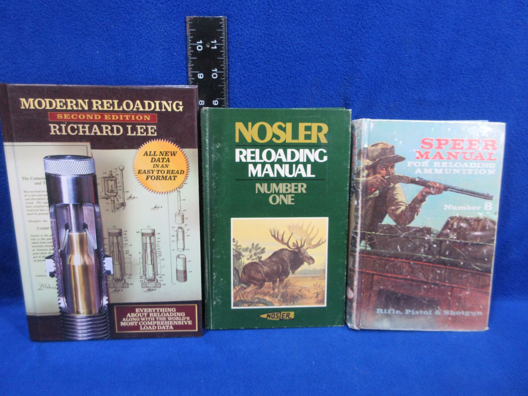 3 Reloading Books - Nosler Reloading Manual No. 1, Speer Reloading Manual No. 8, Richard Lee Modern Reloading 2nd Edition