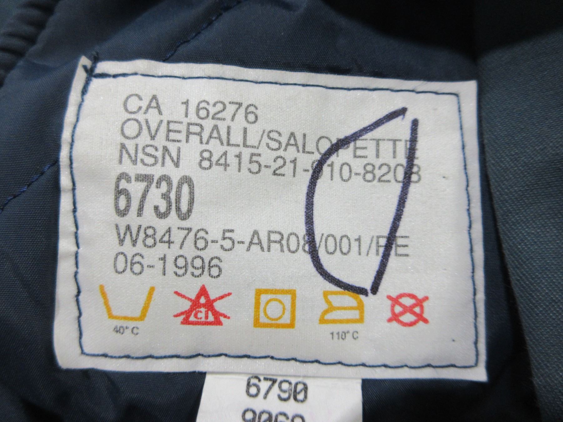 Cold Weather Overall 6730 - 67" Height, Waist 30" - New Old Stock