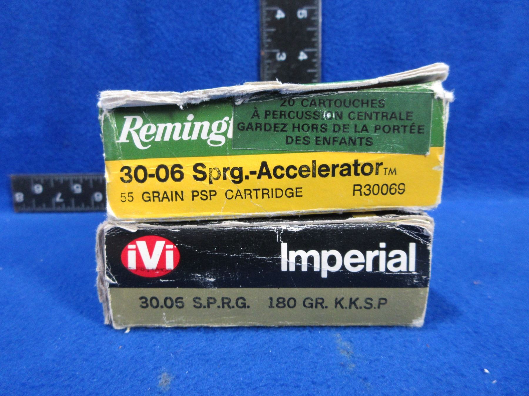 30-06 Sprg Remington and Imperial Cartridges - Box of 12 (Rem. 55gr PSP Accelerator), Box of 14 (Imperial 180gr KKSP) - PICK UP ONLY
