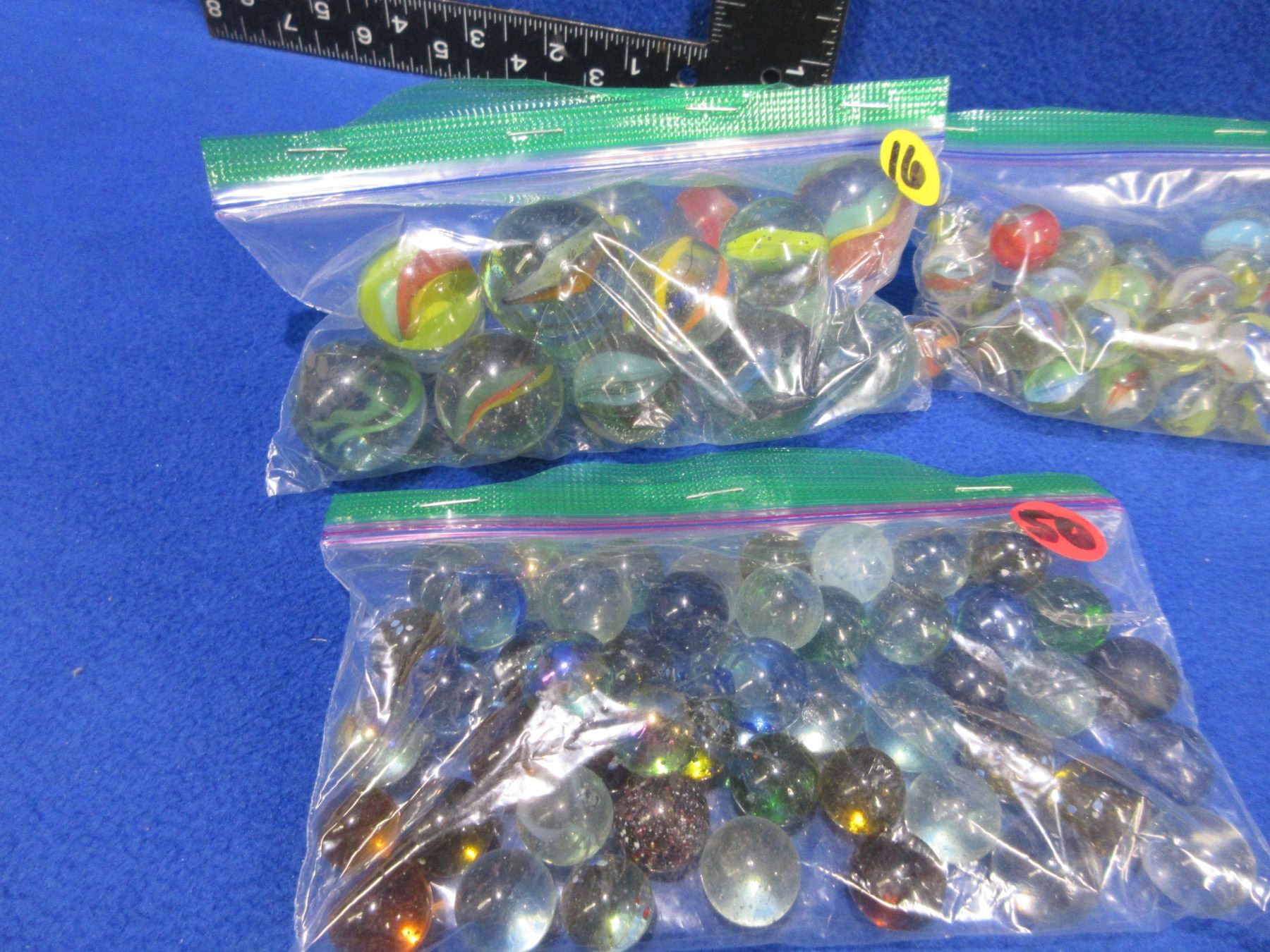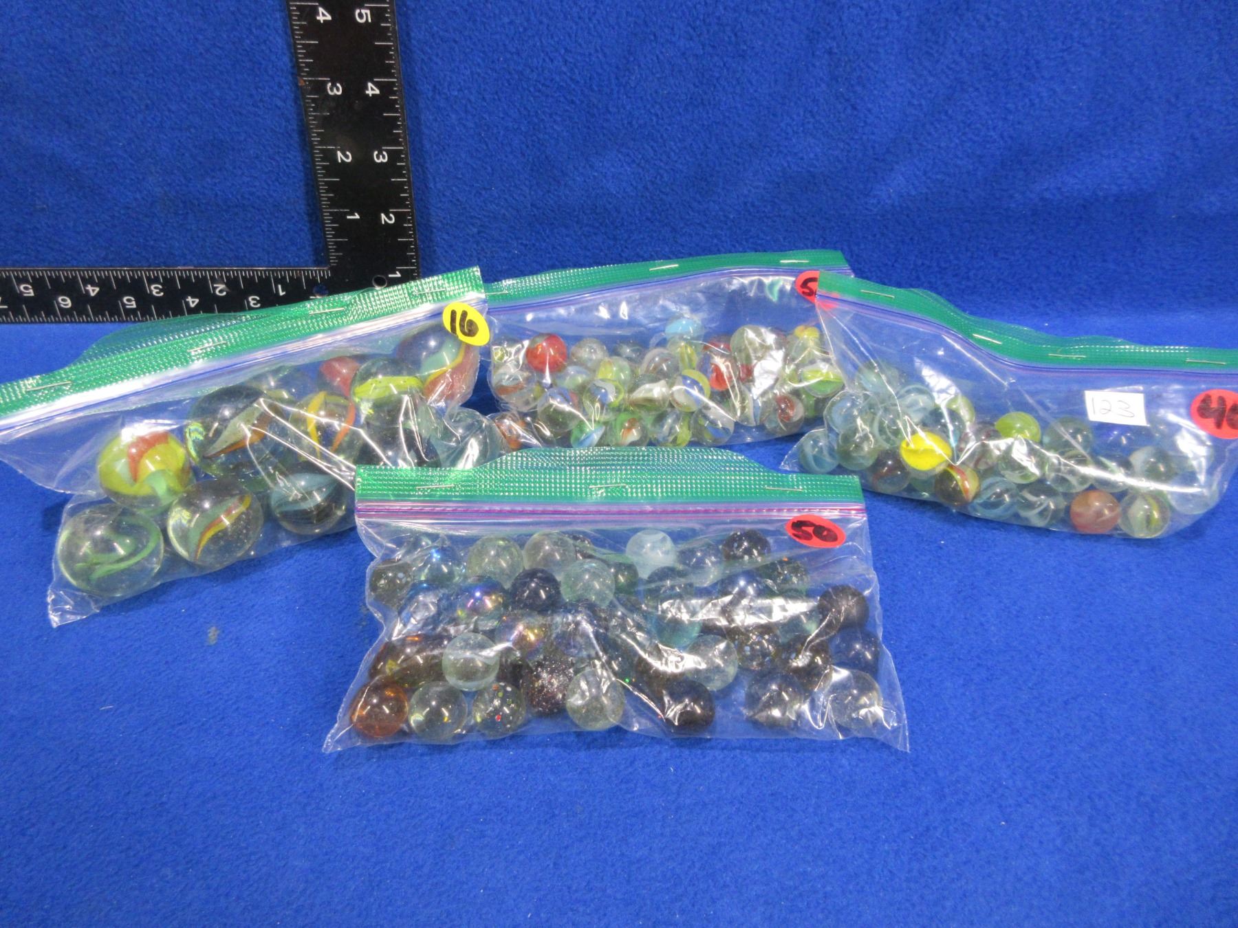 4 Bags of Glass Marbles - Onion Skin (50, 40), Clear (50), Large Shooters(16)