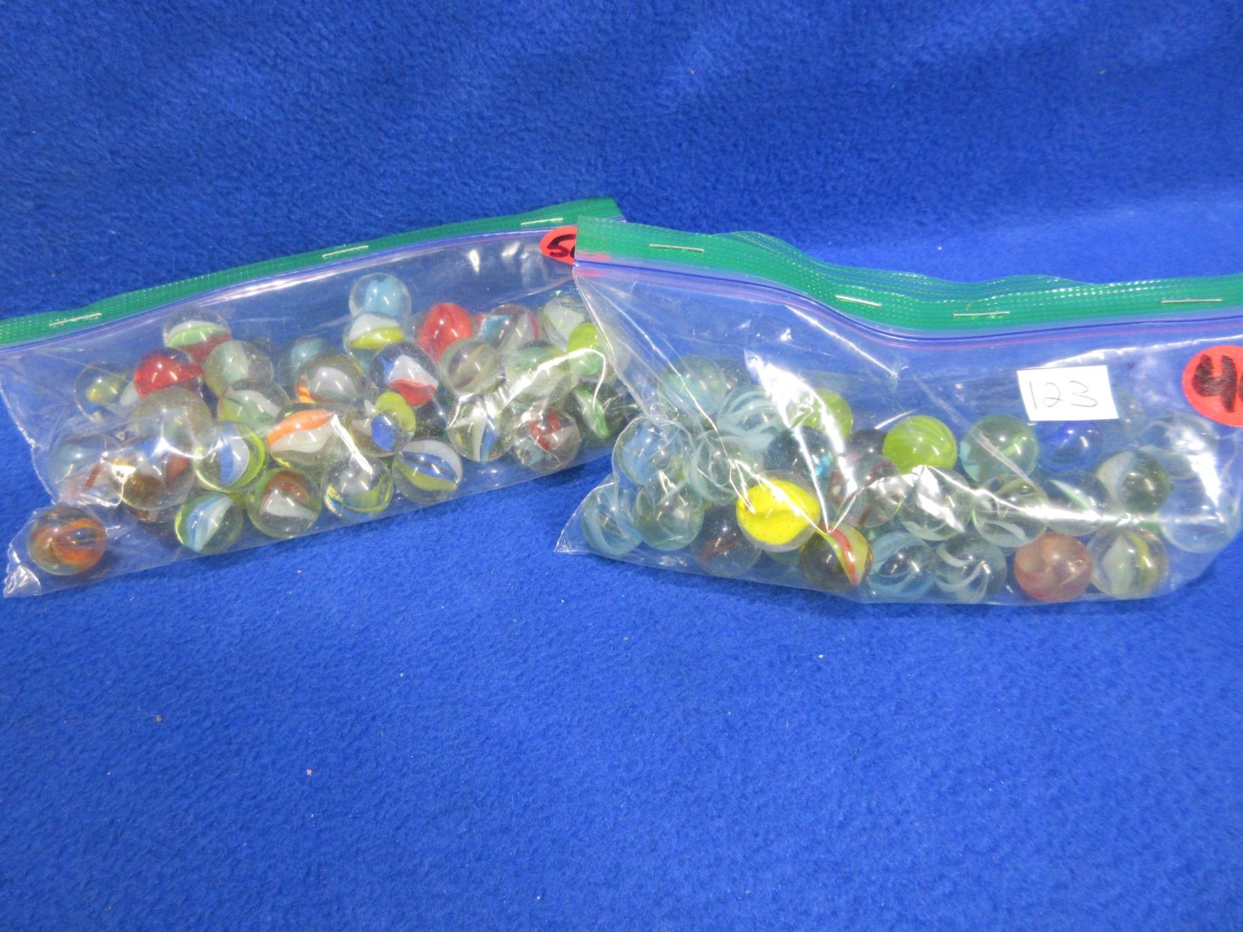 Lot 123 4 Bags of Glass Marbles - Onion Skin, Clear, Large Shooters
