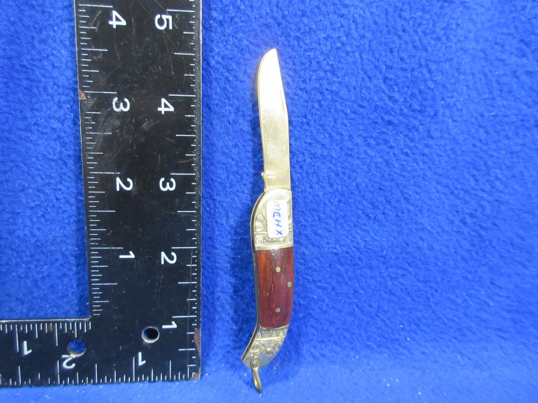 Vintage Brass Blade Folding Pocket Knife - 1 3/4" Blade - Engraved Brass and Wood Handle