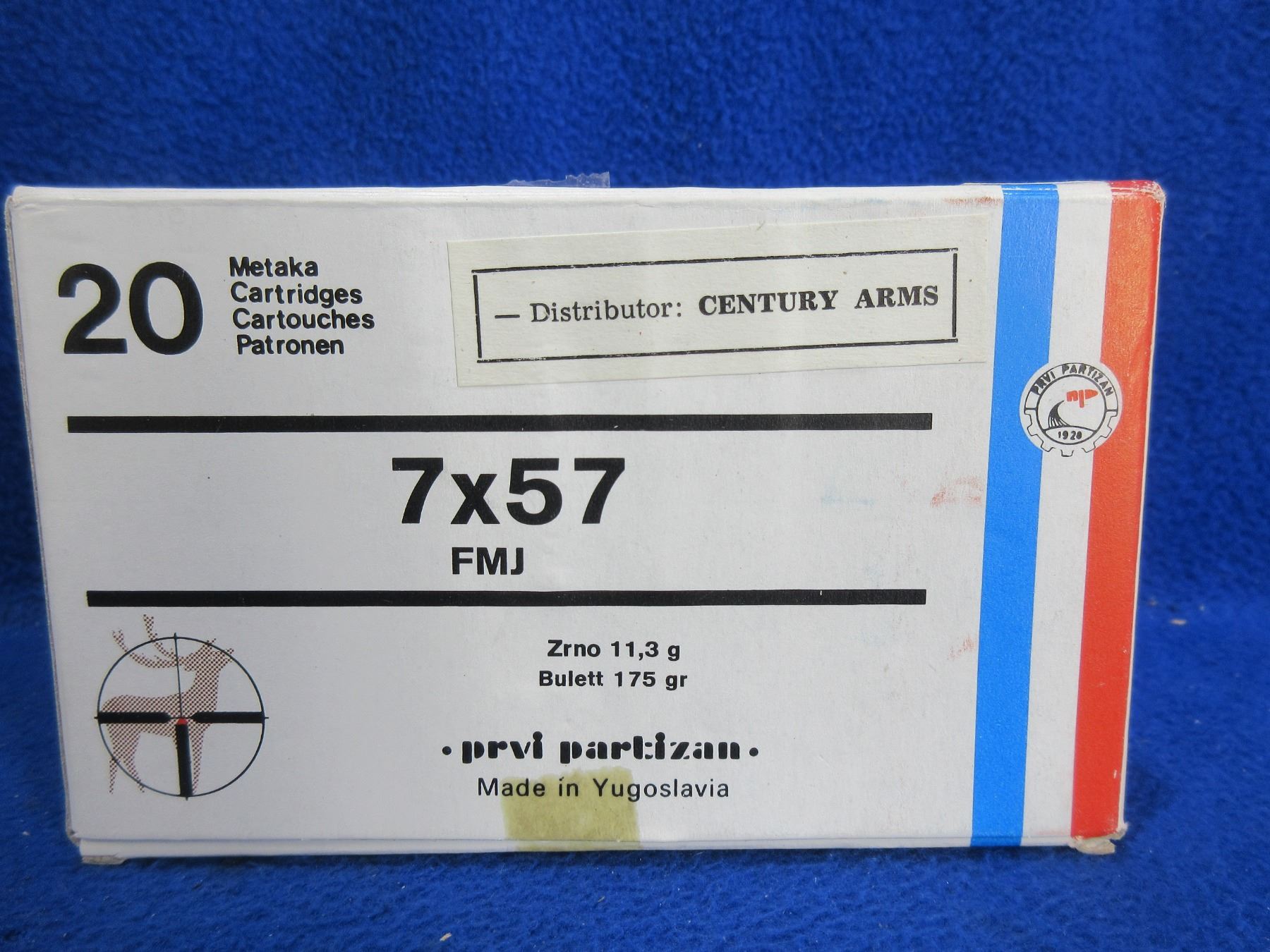 7X57 175gr FMJ Prvi Partizan Cartridges - 3 Boxes of 20 - PICK UP ONLY